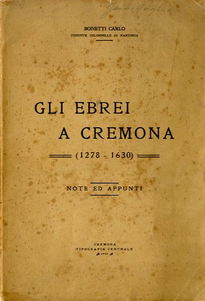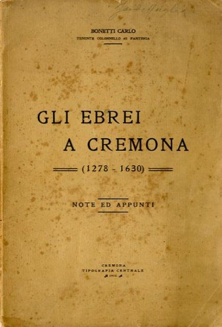 Gli ebrei a Cremona (1278-1630). Note ed appunti.