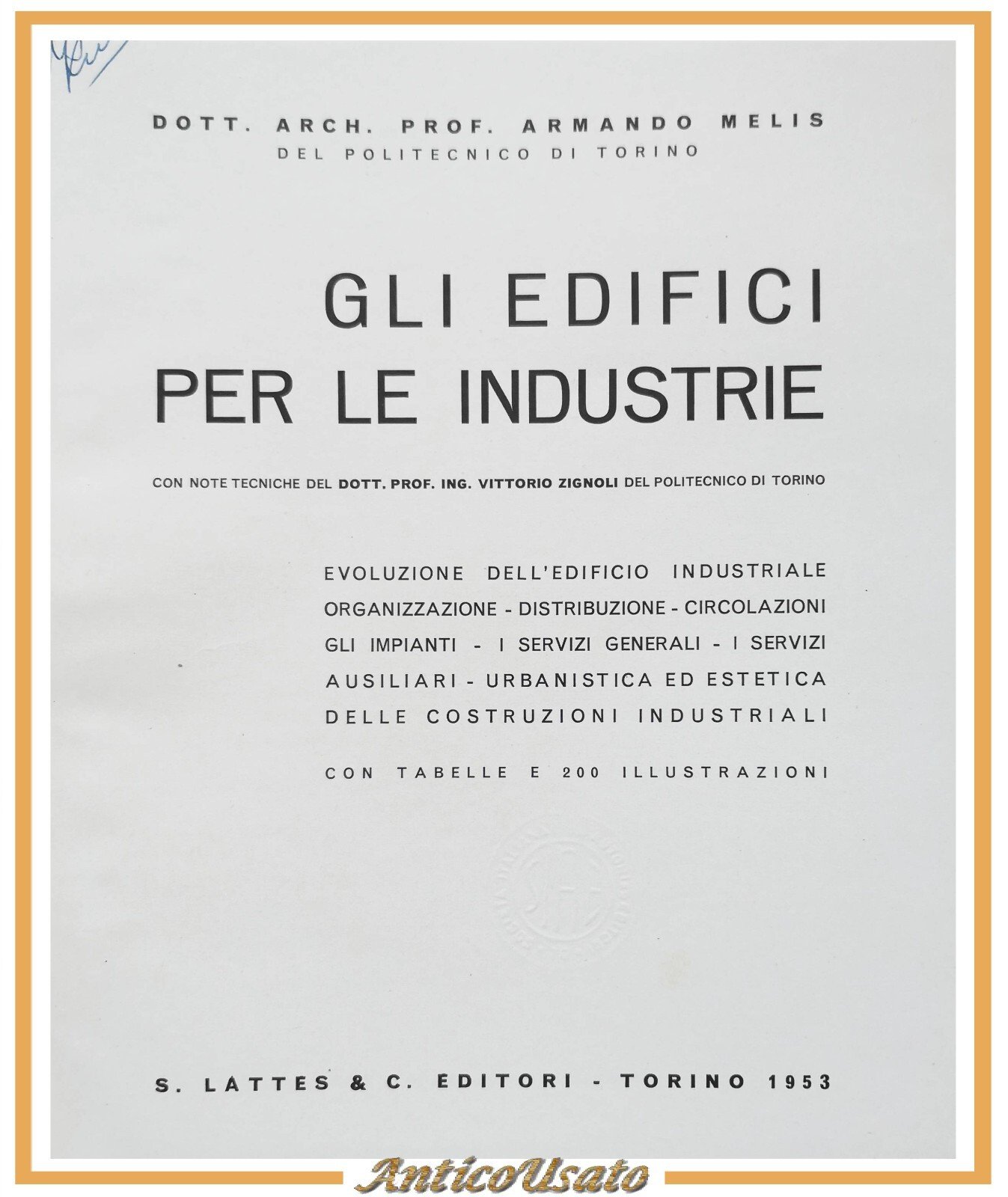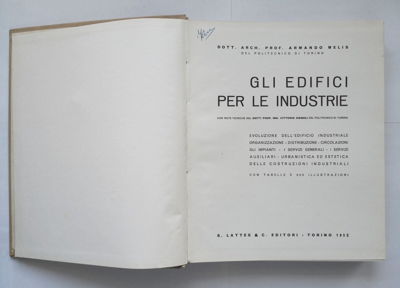 GLI EDIFICI PER LE INDUSTRIE di Armando Melis 1953 Lattes Libro ingegneria edile
