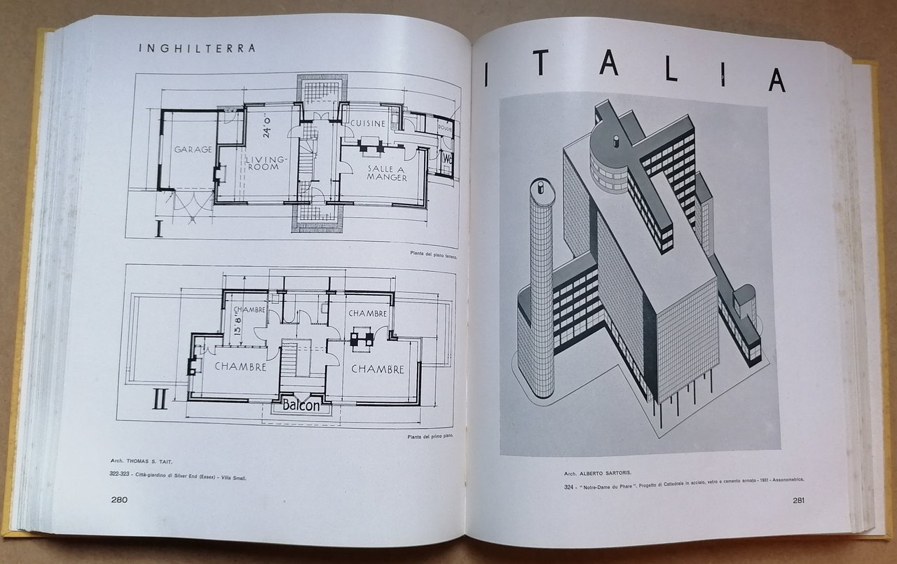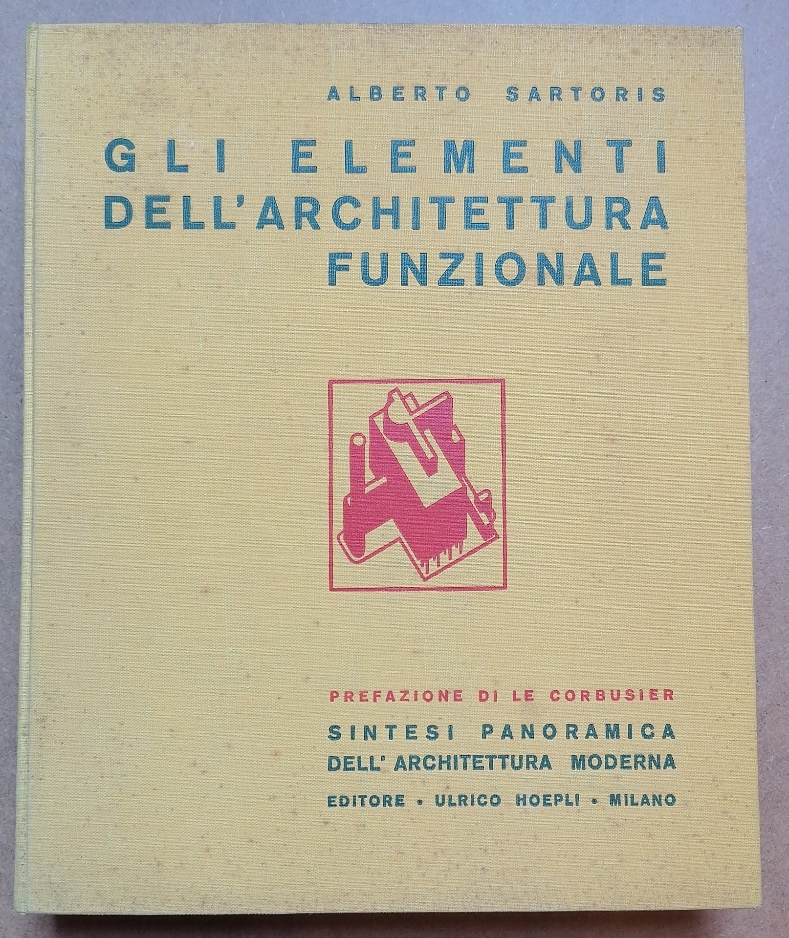 (Architettura razionalista - Funzionalismo) In 4°, legatura editoriale in piena tela gialla con titoli, logo Hoepli e disegno architettonico impressi in verde e rosso, pp. (10),538,(4), con 676 illustrazioni in bianco e nero nel testo. Piccolo ex libris a timbro al recto del foglio di guardia anteriore. Lievi tracce di ossidazione ai piatti della legatura, lungo i tagli, alle guardie, peraltro ottimo stato di conservazione. Prima edizione