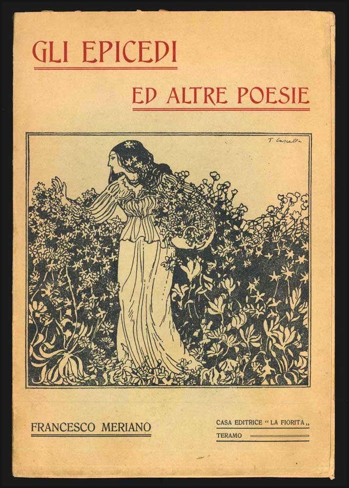 LIBRO Edizione originale. Esemplare in ottimo stato. Opera prima, tirata in soli 500 esemplari, molto rara. Raccolta di componimenti nel solco del simbolismo liberty. -- «Conservo ancora gelosamente l’esemplare degli “Epicedi” regalatomi dal compagno di studi Carlo Ernesto Meriano [.]: pagine grandi, ariose, d’altri tempi; caratteri desueti, copertina illustrata da tratti e figure alla De Karolis, così legati a un’epoca a me totalmente estranea, sconosciuta. [.] gli “Epicedi” segnano la fine di una stagione, la liquidazione mai del tutto compiuta di una sofferta tradizione crepuscolare» (Giorgio Luti, introduzione a Arte e vita, 1982, p. 5). Cammarota, Futurismo, 323.1