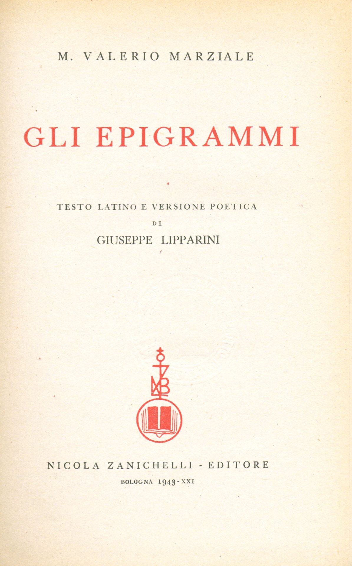 Testo latino a fronte. Traduzione di Giuseppe Lipparini. Coll. Poeti di Roma. 870 � Ba In Ottavi (15-23cm ) Ottimo (Fine) Ottimo