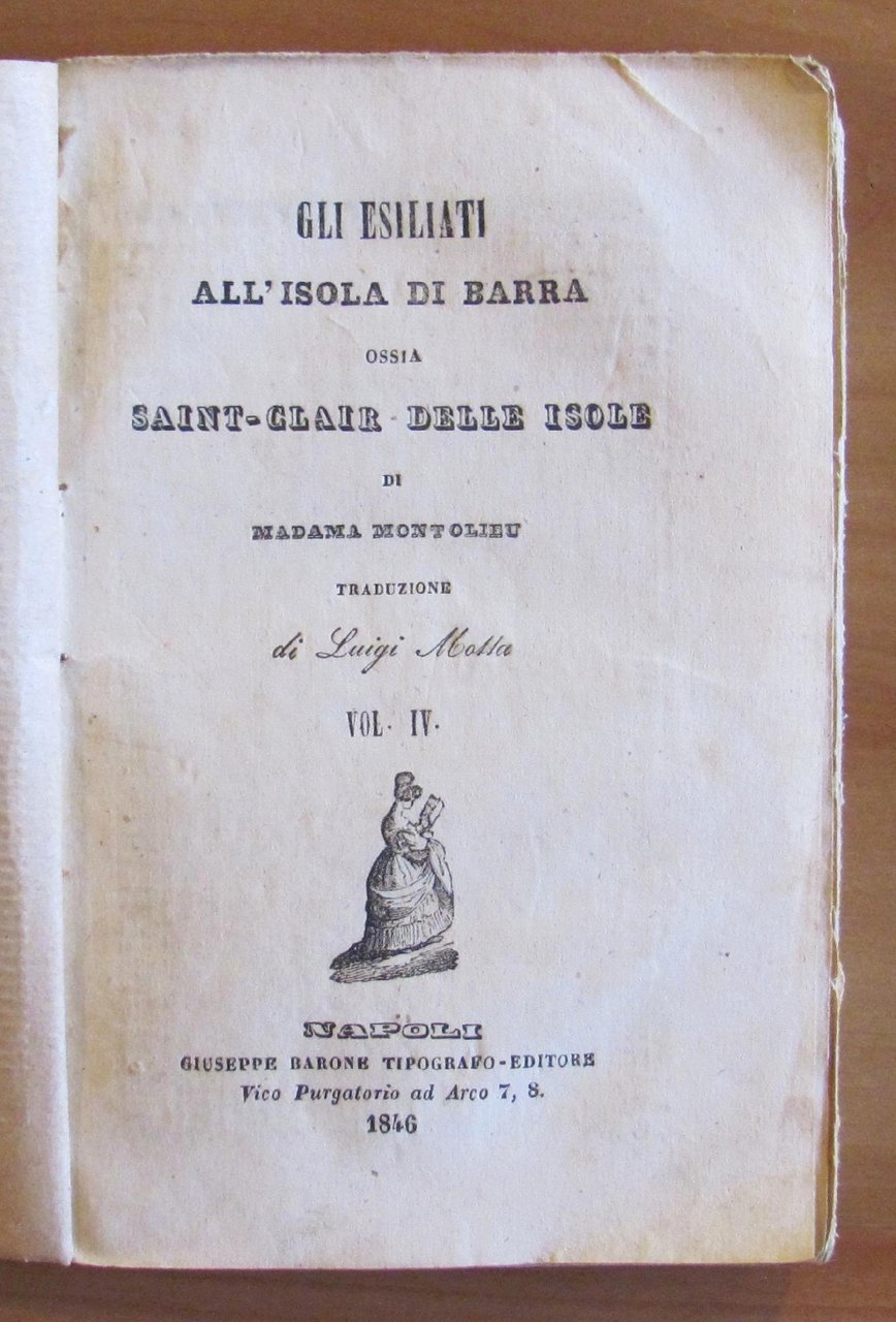 Tipografo Editore Giuseppe Barone - Napoli, 1846. Brossura editoriale. In copertina è riportato Vol. III ma al frontespizio Vol. IV. Si tratta del IV ed ultimo volume. 11x16; pp.181. Raro, Ottimo stato. , Buono (Good)