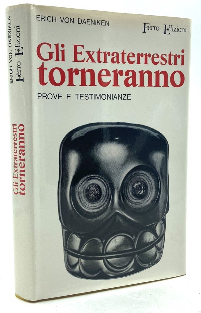 Tela con sovraccoperta illustrata, cm 22.5 x 14.5, pp 194 (2). Sovraccoperta di Giuseppe Valleri. Ottimo stato, timbro ex-libris privato sull’occhietto, angolo del prezzo ritagliato sul risvolto. Prima edizione italiana, tradotta da Maria Attardo Magrini, di Erinnerungen an die Zukunft (Ricordi dal futuro), opera prima di Erich von Daeniken che contribuì a popolarizzare la dottrina ufologica della paleoastronautica: monumenti e reperti antichi dall'origine inspiegabile sarebbero la prova del contatto con civiltà extraterrestri che influenzarono sviluppo dell'umanità in epoche remote. Rifiutato da molte case editrici il libro fu infine accettato dall'editore Econ Verlag che impose tuttavia un'estesa revisione da parte del redattore Wilhelm Roggersdorf, ovvero Wilhelm Utermann, navigato giornalista e sceneggiatore che aveva affinato la propria penna sulle pagine della pubblicistica della gioventù hitleriana ed era stato direttore del Völkischer Beobachter, l'organo ufficiale del partito nazista. Radicalmente riscritto, il libro fu pubblicato a febbraio 1968. L'iniziale tiratura di 6000 copie fu rapidamente esaurita e nel primo anno si registrarono 210000 vendite, arrivate a 600000 a settembre 1970. Tradotto in inglese (Chariots of the Gods?) e in molte altre lingue, il libro ottenne uno straordinario successo internazionale - si parlò di epidemia di «Dänikitis» - e fu trasposto in film documentario da Harald Reini (1970). Questa prima edizione italiana del settembre 1969 fu seguita da una seconda l'anno successivo, per poi essere ristampata in brossura da Armenia nel 1976.