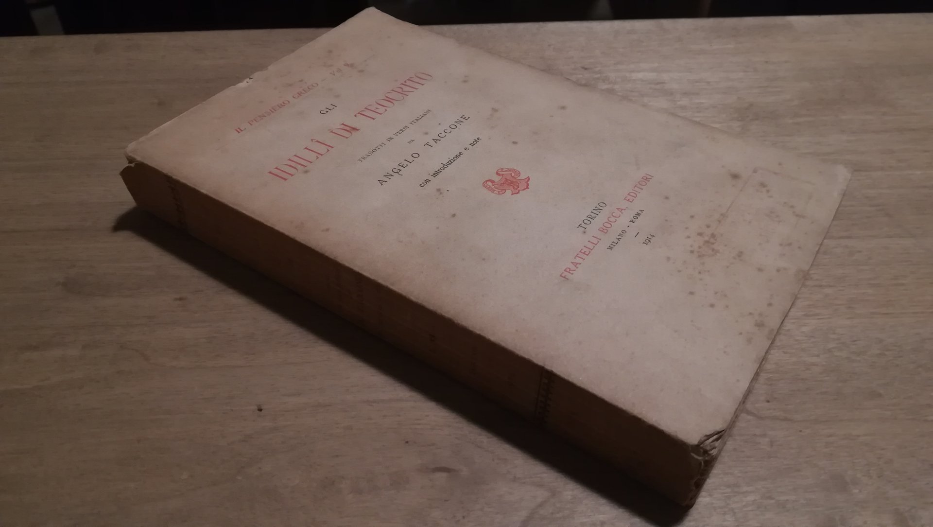 A cura di Angelo Taccone - Gli idilli di Teocrito Fratelli Bocca - Prima edizione 1914 Libro in buone condizioni, brunito, dorso rigato, leggere fioriture in copertina e alla quarta di copertina. Non esitate a contattarci per altre foto o richieste. Saremo lieti di soddisfare ogni vostra esigenza.