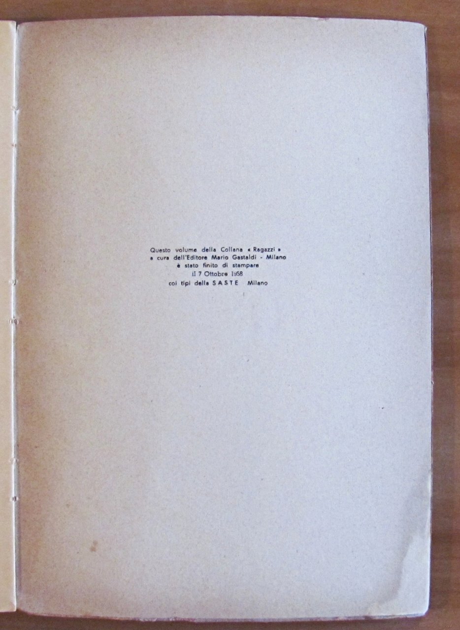 Encomio solenne al Concorso Nazionale Gastaldi 1957 per due volumi da "ragazzi". Collana I Ragazzi. Editore Gastaldi - Milano, 1958. Brossura editoriale con piccola spellatura al dorso. Leggera traccia di matita colorata a pag.23 (come da foto). 17x25; pp.135. Buonissimo stato. , Molto buono (Very Good)