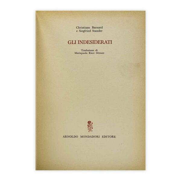 Autore: Christiaan Barnard e Siegried Stander Titolo: Gli indesiderati Sottotitolo: Traduzione di Mariapaola Ricci Dèttore Edizione: Mondadori 1975 prima edizione Dimensioni: 21x14 cm Pagine: 413 Copertina: Cartonato Condizioni: Ottime come da foto Peso: 0,819 kg