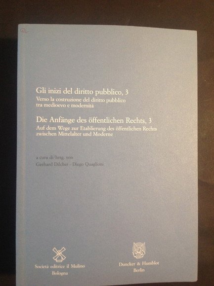GLI INIZI DEL DIRITTO PUBBLICO, 3 / DIE ANFANGE DES OFFENTLICHEN RECHTS, 3 VERSO LA COSTRUZIONE DEL DIRITTO PUBBLICO TRA MEDIOEVO E MODERNITA' / AUF DEM WEGE ZUR ETABLIERUNG DES OFFENTLICHEN RECHTS ZWISCHEN MITTELALTER UND MODERNE