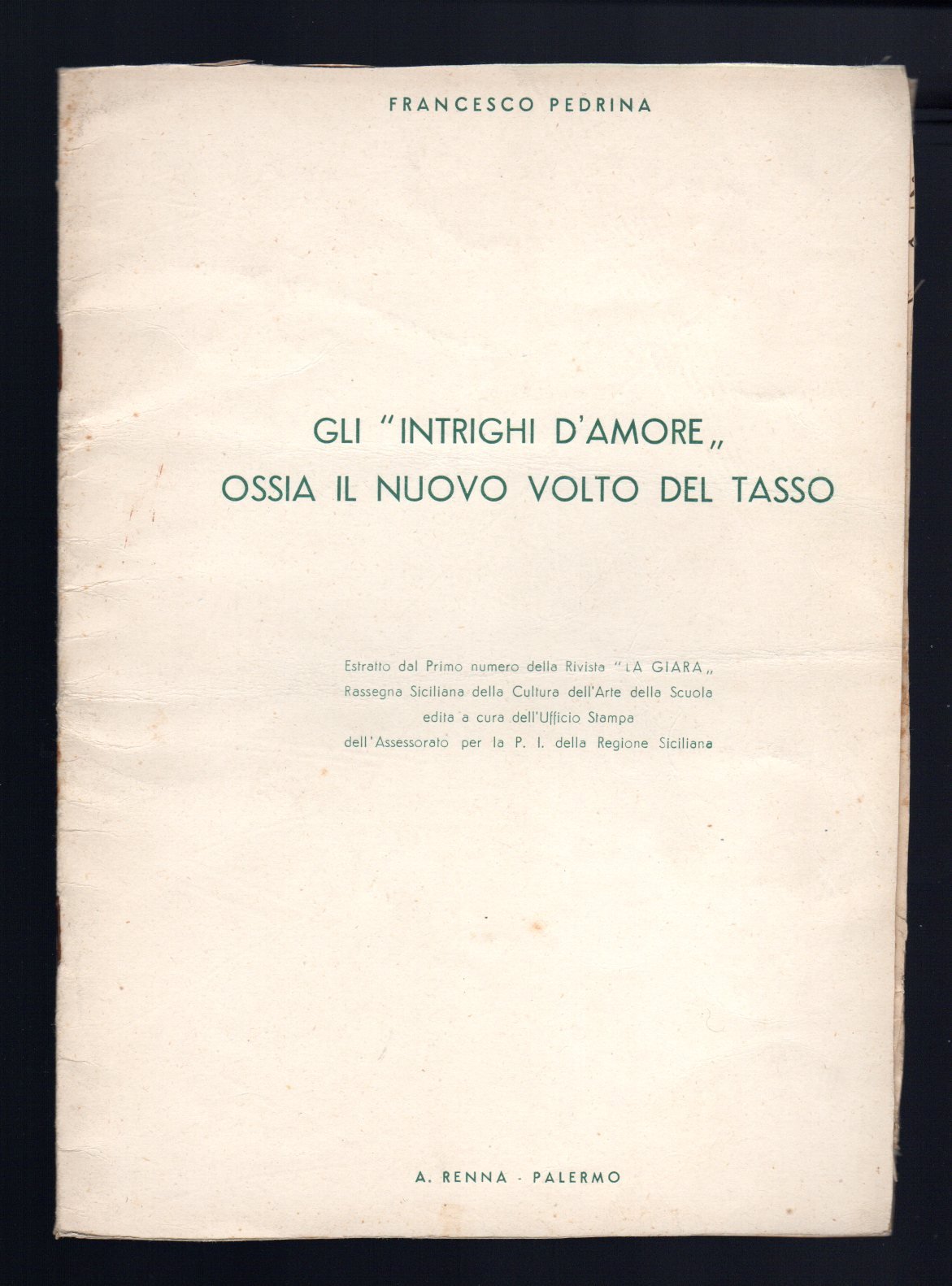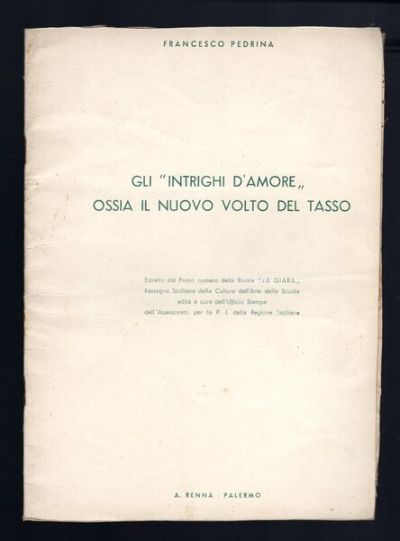 Opuscolo vintage. Estratto dal I numero della rivista "La Giara". Tagli malamente rifilati. Usura da scaffale. Ordinario segno del tempo.
