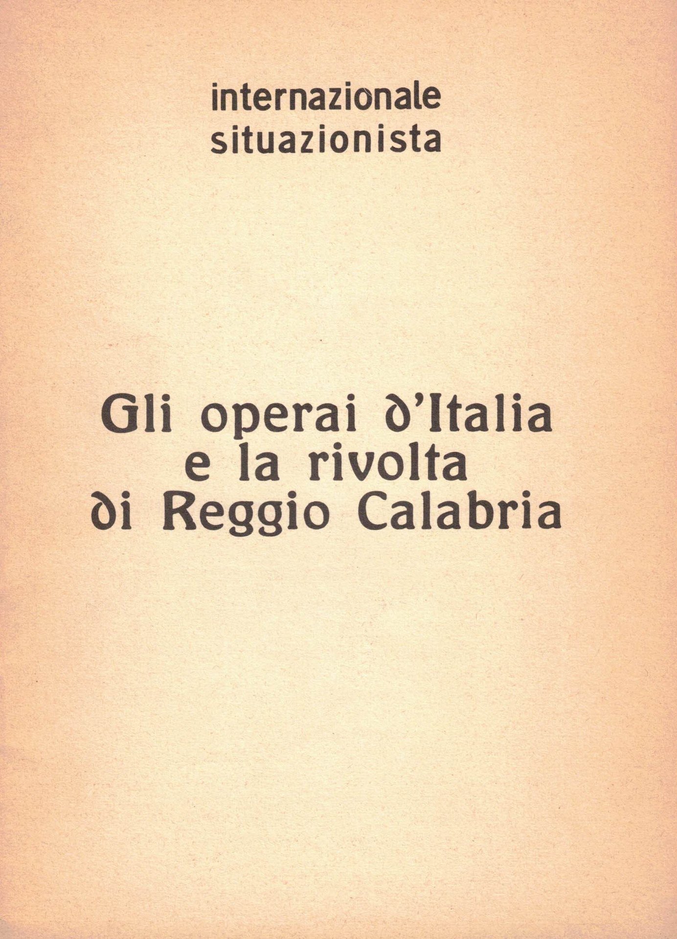 Una città è insorta e ha preso le armi. E allora viva lo stato d'assedio in tutte le città! L'I.S. prende posizioni sulla rivolta sia contro le strumentalizzazioni di Lotta Continua sia contro le provocazioni fasciste. In calce è riprodotto il volantino "Il Reichstag brucia", distribuito fin dal 19 dicembre del '69 nelle fabbriche e in Piazza Fontana: una comprensione in tempo reale della strategia della tensione. Legatura con punti metallici, esce come supplemento al primo e unico numero della rivista "Internazionale Situazionista".