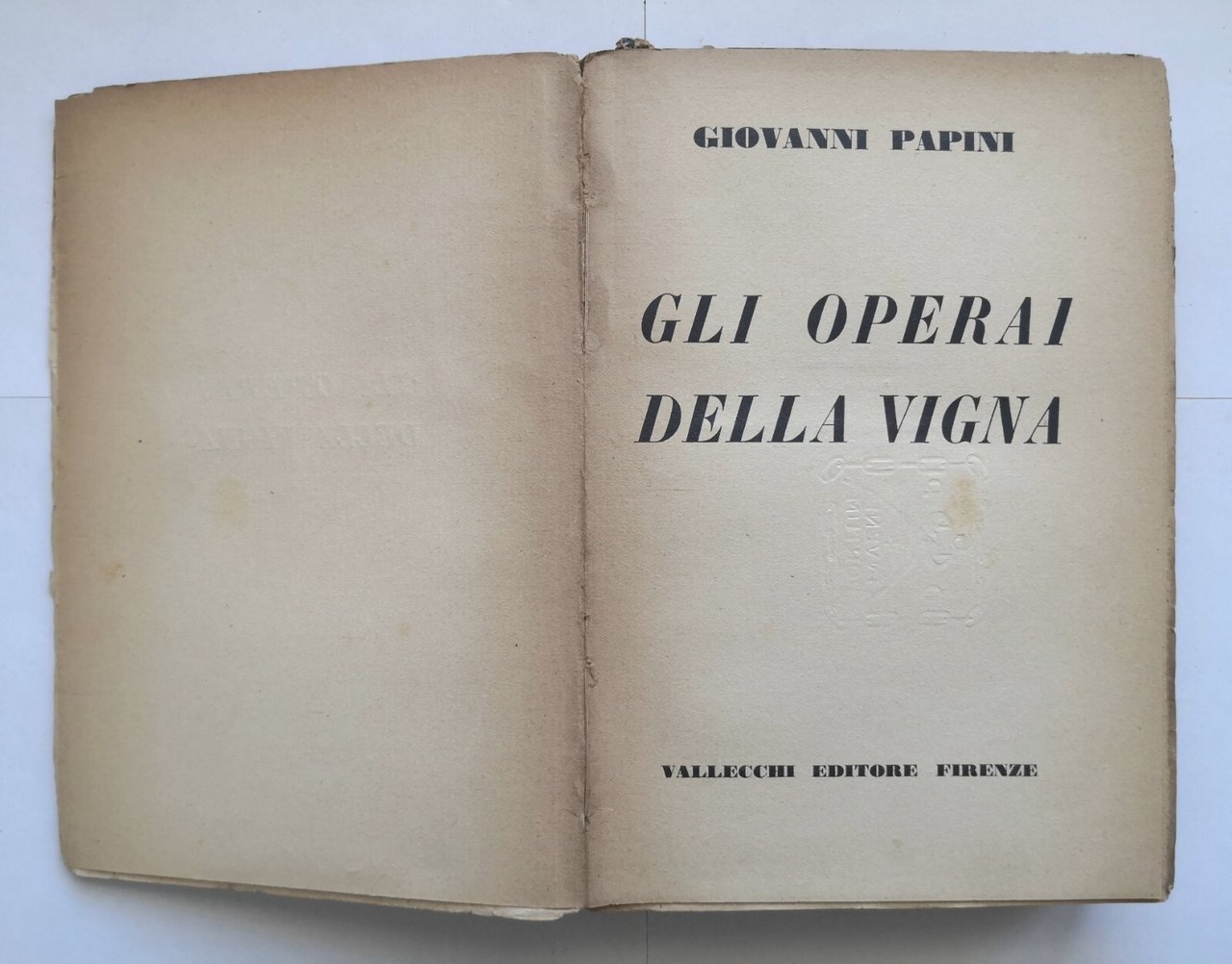 GLI OPERAI DELLA VIGNA di Giovanni Papini 1929 Vallecchi Libro I edizione prima