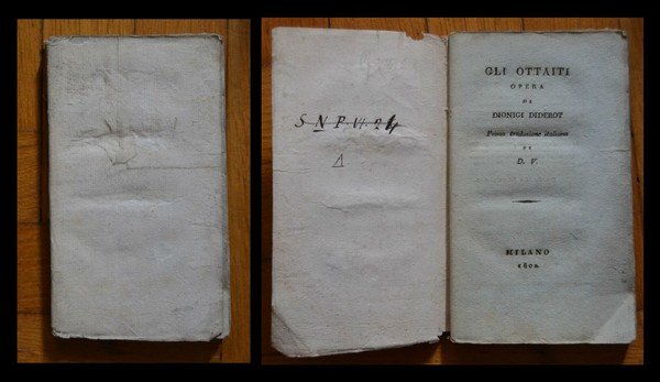 Gli ottaiti. Opera di Dionigi Diderot. Prima traduzione italiana di D. V. Supplemento al Viaggio di Bougainville. Prima edizione.