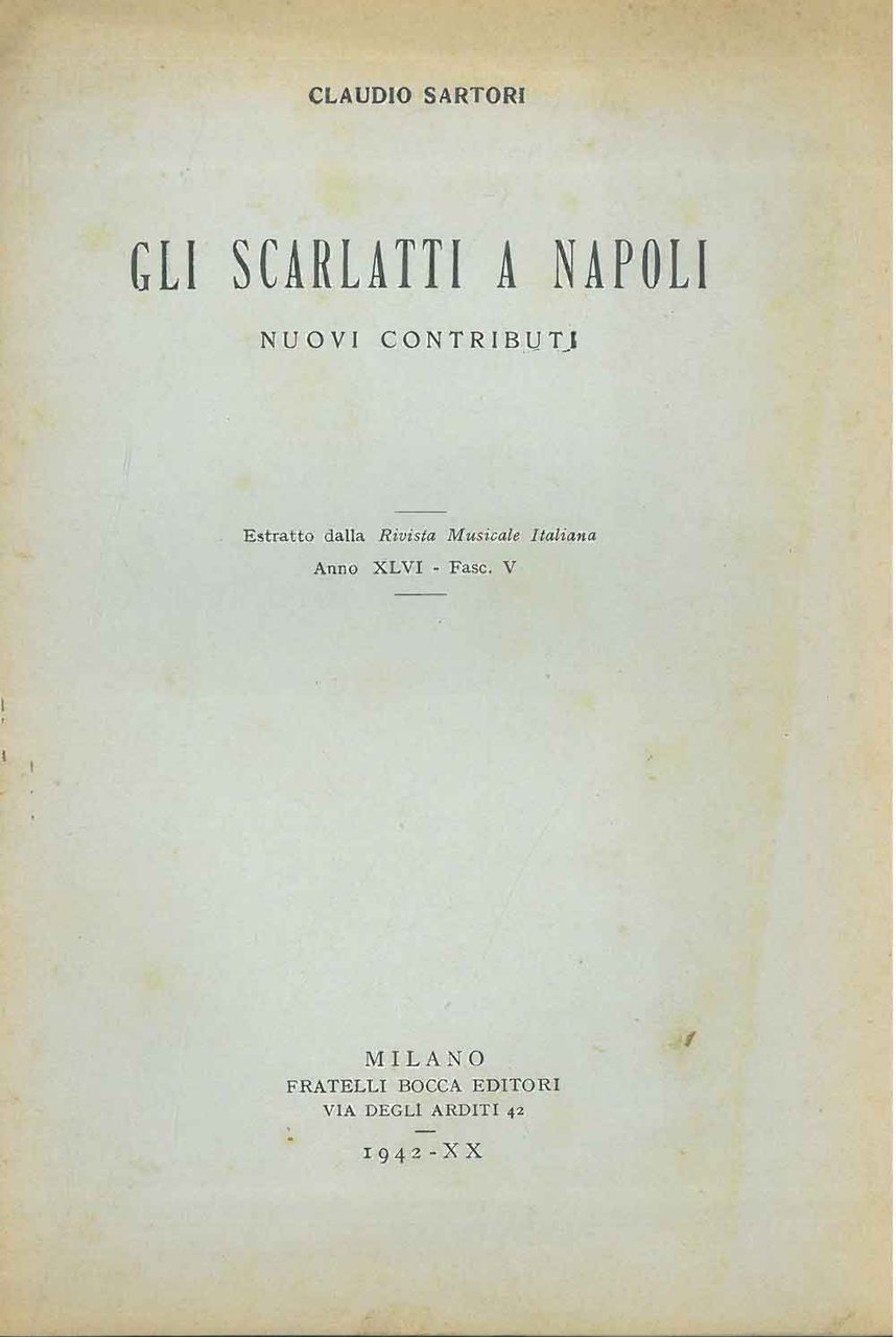 Gli Scarlatti a Napoli. Nuovi contributi. Estratto