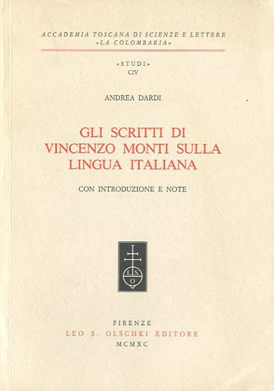 Gli scritti di Vincenzo Monti sulla lingua italiana. Con introduzione e note.