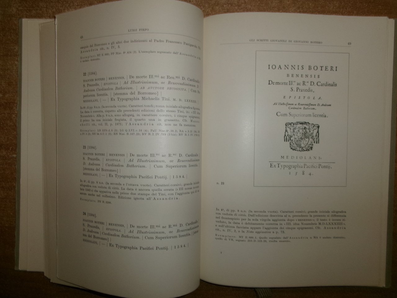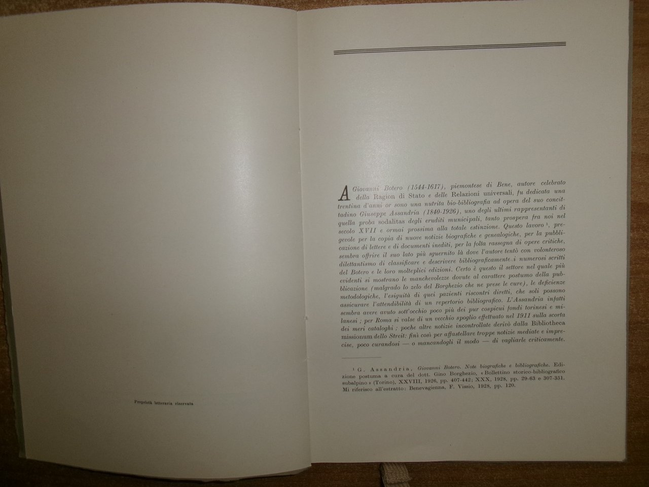 Gli Scritti Giovanili di GIOVANNI BOTERO. LUIGI FIRPO 1960