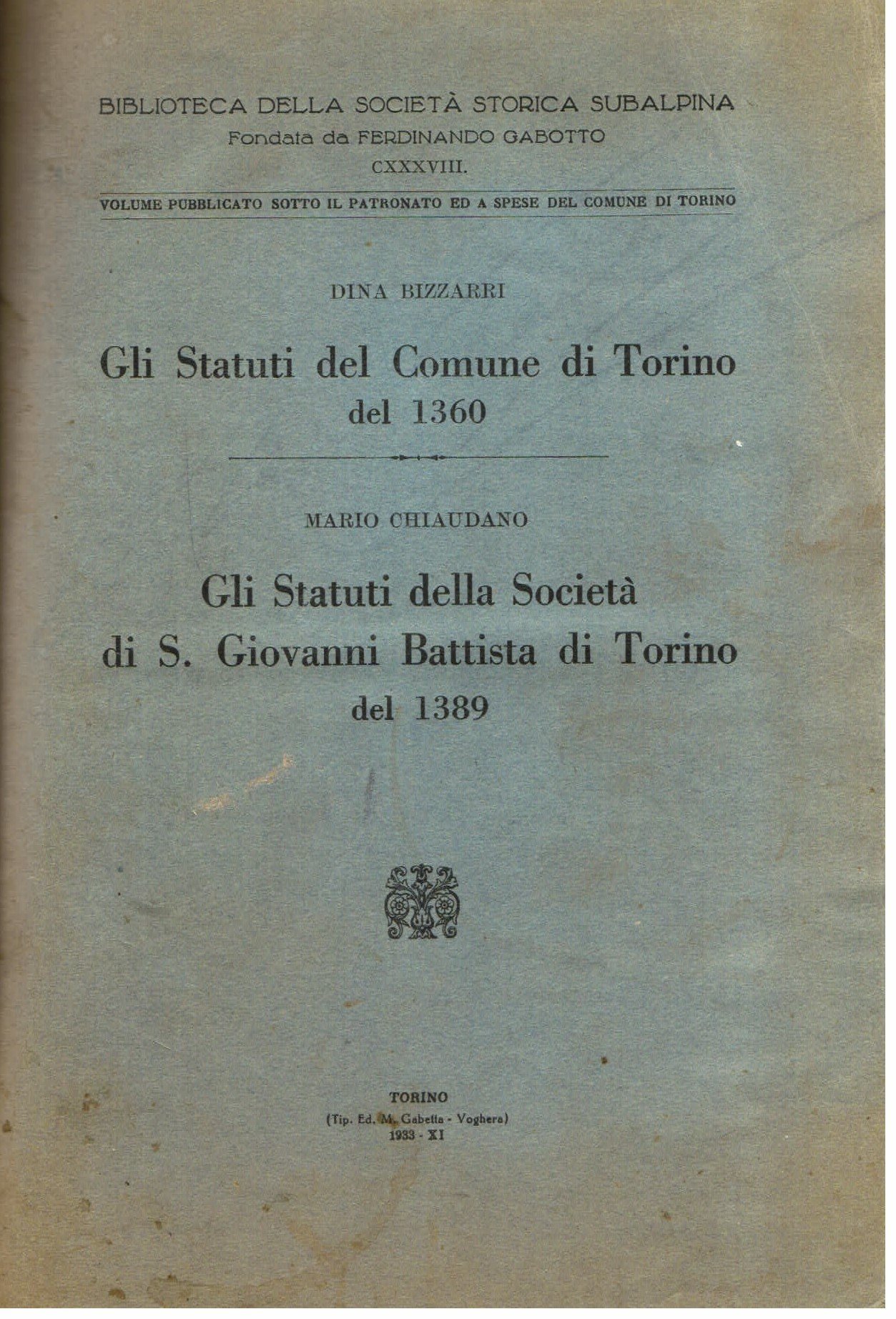 Società Storica Subalpina (Tip. ed. M. Gabetta), 1933