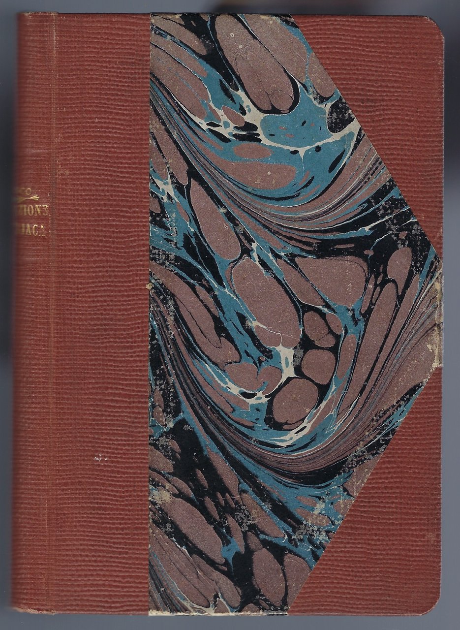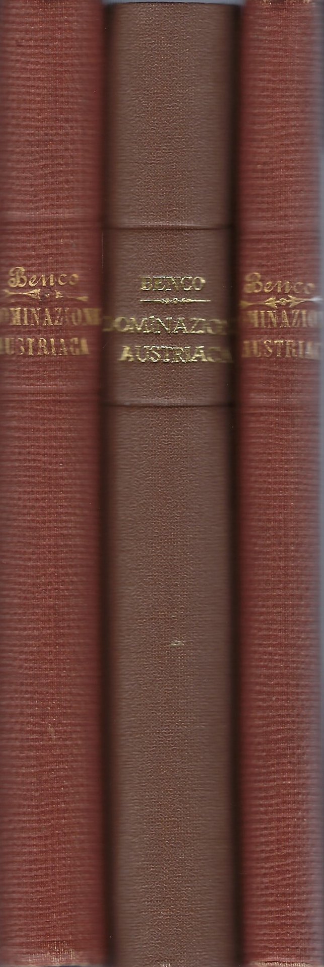 Rilegature artigianali in mezzo zigrino con angoli, con titoli ai dorsi. Presentano alcuni segni d'usura.