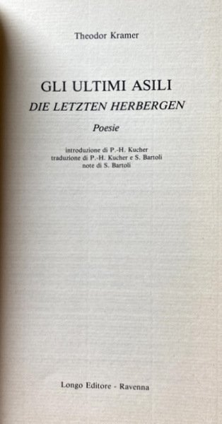 GLI ULTIMI ASILI. DIE LETZTEN HERBERGEN. POESIE. (TESTO TEDESCO E ITALIANO A FRONTE). A CURA DI SIMONA BARTOLI