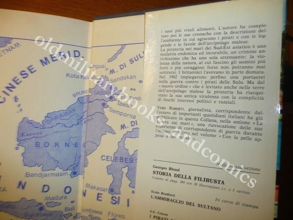 DESCRIZIONE: Mursia Milano 1971 I^ Ed. br. ed. con sovracc. ill. con 2 cartine 2 disegni 41 fotografie fuori testo pp. 166 in 8°. Scomparsa negli altri mari, la pirateria sopravvive ancora negli stretti di Malacca e Singapore ed è più minacciosa nelle acque tra le isole Sulu e la costa orientale di Sabah, nel Borneo Settentrionale e nel vicino mare delle Celebes. CONDIZIONI: Buone sovracc. strappata alla parte alta a dx e riparata con scotch. PESO / WEIGHT: 489 gr. without package