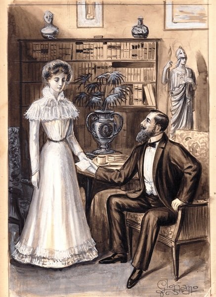 Gloriano Rossi. Pittore di Milano. Disegno all'Acquerello originale e firmato.