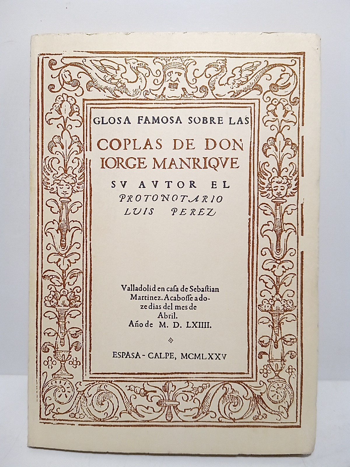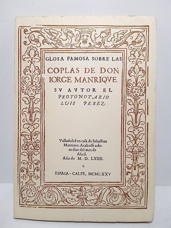 Glosa Famosa sobre las Coplas de Jorge Manrique / por el Protonotario Luis Pérez; con una nota preliminar de M. de Riquer