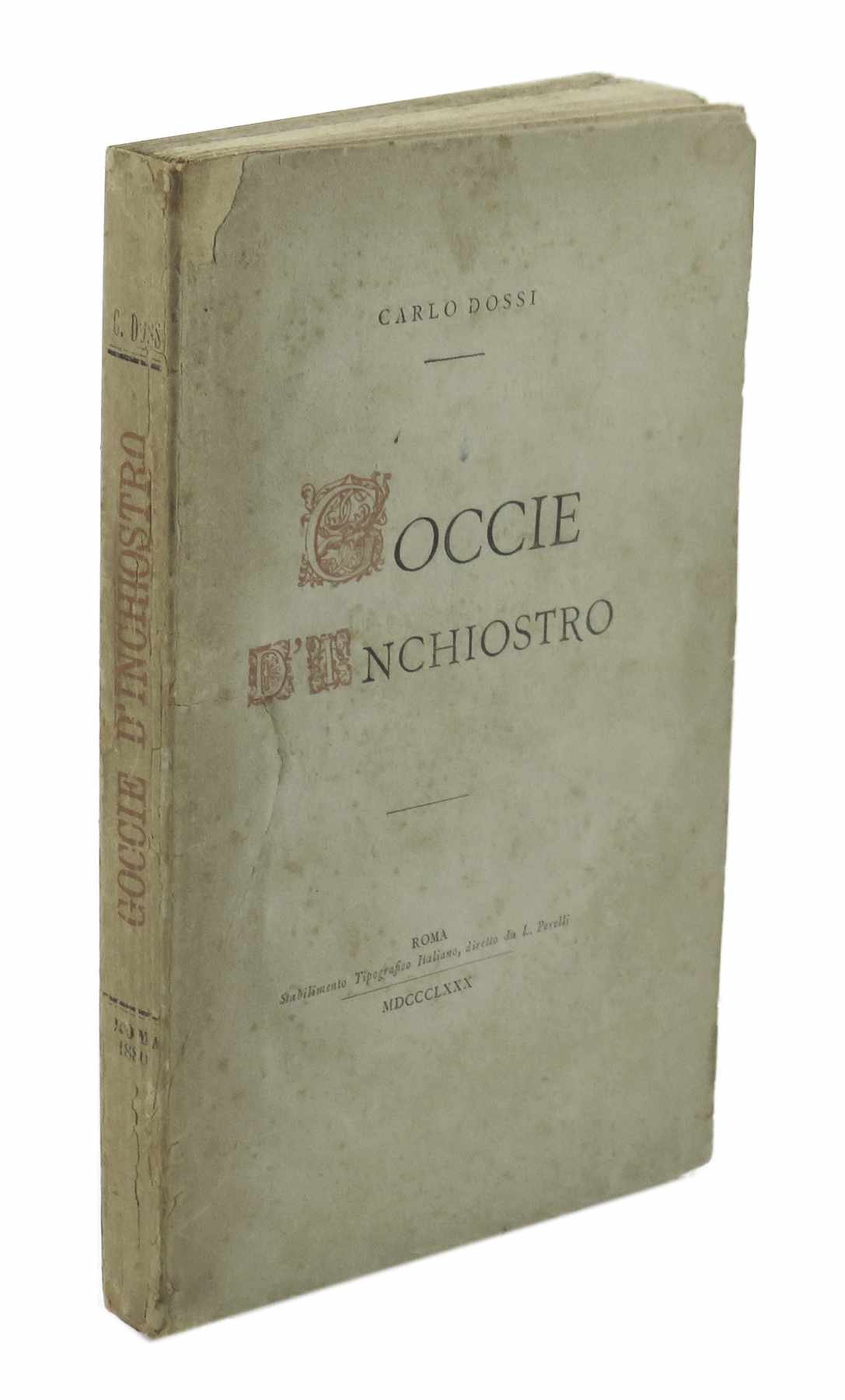 LIBROPrima edizione.Buon esemplare a pieni margini (restauro professionale al piatto anteriore, a sanare antico strappetto, dorso rinforzato, pagine lievemente brunite in maniera uniforme), impreziosito dalla rarissima brossura originale.Importante raccolta di racconti in parte inediti e in parte già stampati in precedenza, particolarmente nella Vita di Alberto Pisani (1870) e nella plaquette Elvira (1872); «ma altro è stampare, altro è pubblicare», ammonisce Luigi Perelli nell’«Avvertenza» ai lettori che apre il volume: «gli scarsi esemplari, impressi all’Economia, rimasero sequestrati dall’Amicizia; e però questi bozzetti, spannati, per così dire, dagli scritti del Dossi, quantunque tengano più di un anno di vita, pônno chiamarsi ancora nuovi. Pur, se tali per qualche rado lettore non sono – meglio per lui e per noi! – poiché le opere del nostro Autore non lèggonsi veramente che nel rileggerle» (p. V). -- Si notino le date differenti al frontespizio e alla copertina: l’incongruenza è dovuta ai ritardi nella stampa, inizialmente prevista per il Natale del 1879, ma posticipata al gennaio dell’anno successivo (Isella - Reverdini, La vita di Alberto Pisani, p. 70). -- Risulta ignota la consistenza della tiratura, che dovette però aggirarsi intorno ai duecento esemplari, stante un appunto autografo di Dossi, che elenca i centosettanta destinatari di copie singole o doppie in omaggio (ivi, p. 69). L’opera fu molto apprezzata dai contemporanei, e bastino le parole di un “recensore” d’eccezione, Luigi Conconi, che in una lettera si rivolse a Dossi con generosissimi elogi: «Permettimi di dirti che questo è un bellissimo e un buonissimo libro, quantunque ti guardi bene dal chiedere un giudizio a me e fai bene – non posso fare a meno di infliggertelo, tanto è stagionato, confermato, e amplificato» (si cita da ivi, p. 71). -- L’edizione risulta piuttosto rara, una decina le copie nell’Opac Sbn.Isella - Reverdini, «La vita di Alberto Pisani», 1880/1, p. 69-71; Parenti, «Rarità», VIII, pp. 264-5; Dossi, «Opere», pp. 1433-55.