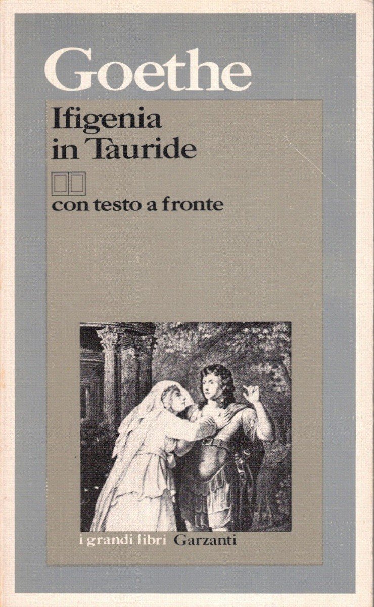 Johann Wolfgang Goethe, Ifigenia in Tauride, introduzione, traduzione e note di Roberto Fertonani, Garzanti (Garzanti Editore s.p.a.), Milano 1985, prima ed., pp. XXXVII, 163, cm 18, br. ed. Collana I grandi libri Garzanti, vol. 321. Titolo originale: Iphigenie auf Tauris. Testo originale in lingua tedesca a fronte con traduzione, introduzione e apparati in lingua italiana. In calce alla quarta di copertina, piccola etichetta adesiva Garzanti con prezzo di vendita aggiornato. Minime tracce d’uso alla brossura, lievissima ingiallitura della carta, per il resto perfetto.