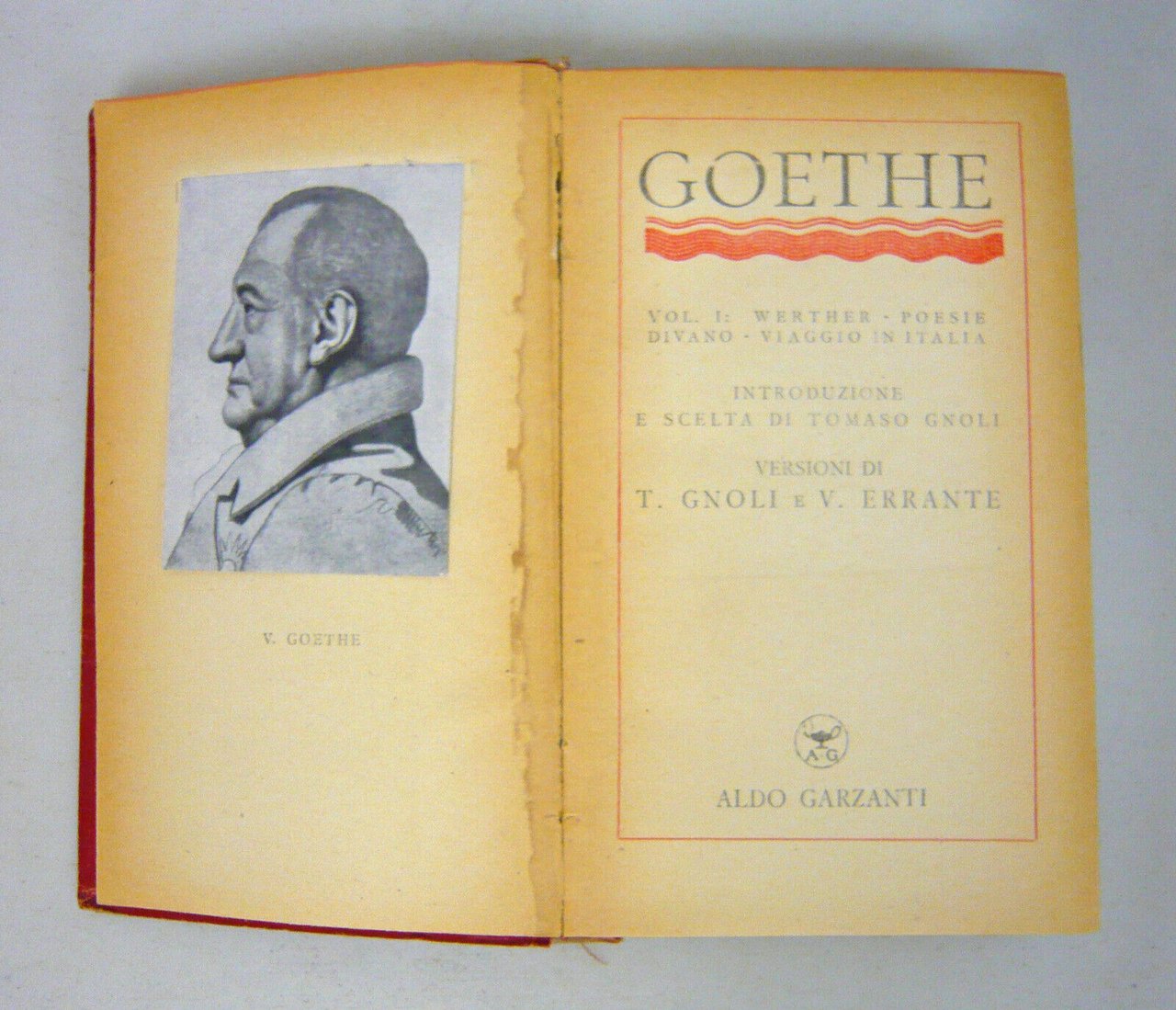 Goethe,VOL.I:WERTHER-POESIE DIVANO-VIAGGIO IN ITALIA,1944 Garzanti[Gnoli