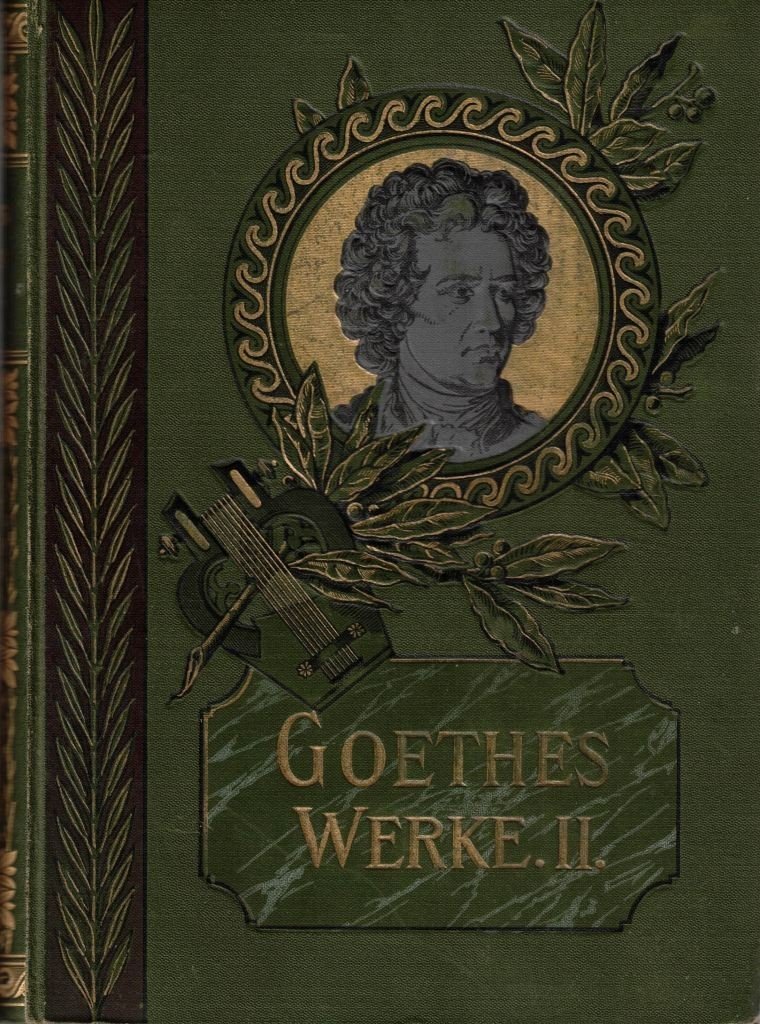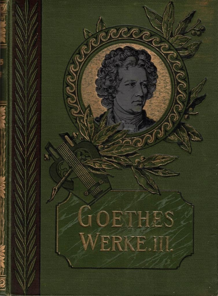Goethes Werke. In auswahl, voll. I-III e V-VI, Verlag der Literaturwerke Minerva, Leipzig s.d., 5 voll., paginazione varia per un totale di pp. 1598 con testo stampato su due colonne in eleganti caratteri gotici, ill. b.n., testatine e finalini ill. b.n., 81 c. di tavv. f.t. ill. b.n., cm 25, legatura in tutta tela ed. con titoli e fregi in oro al dorso, titoli e fregi in oro al piatto anteriore, decorazioni a impressione al piatto posteriore e tagli spruzzati. Collana Illustrierte Klassiker Ausgabe. Pubblicazione in lingua tedesca. Il lotto comprende i volumi I-III e V-VI (in totale 5 voll.). Eister band (Vol. I): Gedichte, pp. 383, 1 c. di tav. f.t. ill. b.n. con ritratto dell’Autore. Zweiter band (Vol. II): Werthers leiden – Hermann und Dorothea – Gotz von Berlichingen – Clavigo – Stella – Die Geschwister – Naturliche Tochter, pp. 343, 22 c. di tavv. f.t. ill. b.n. Dritter Band (Vol. III): Faust I Teil – Faust II Teil, pp. 285, 20 c. di tavv. f.t. ill. b.n. Funfter Band (Vol. V): Aus meinem leben. Wahrheit un dichtung. Buch I-XI, pp. 284, 24 c. di tavv. f.t. ill. b.n. Sechster Band (Vol. VI): Aus meinem leben. Wahrheit un dichtung. Buch XII-XX – Reineke Fuchs, pp. 303, 14 c. di tavv. f.t. ill. b.n. Minime fioriture, qualche sporadico segnetto di lapis, per il resto perfetti.