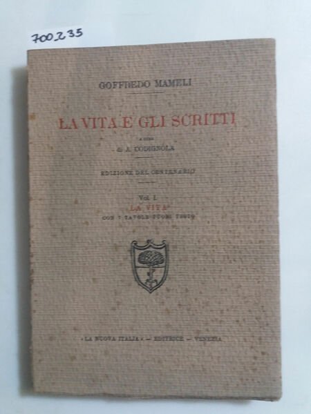 Goffredo Mameli La vita e gli scritti - ed. del centenario - vol. I: La vita