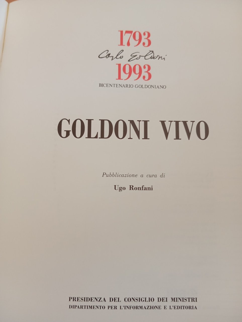Goldoni Vivo, Bicentenario Carlo Goldoni, Ugo Ronfani, 1994
