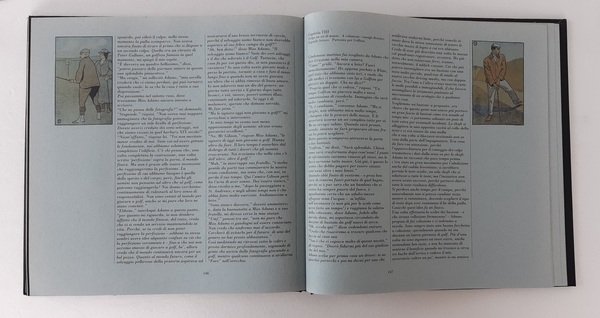 (mm.305x305), pagg.161-cc.nn3. Legatura rigida editoriale in seta nera con illustrazione inserita al piatto anteriore; titoli in oro al piatto ed al dorso. Privo di cofanetto. Golf legni, ferri e memorabilia, testo storico di David Stirk. “Golf nell’anno 2000” romanzo ottocentesco di fantascienza di J.A.C.K. introdotto da Guido Almansi. Stampato a Milano, nel mese di maggio 1989 in 5000 esemplari numerati (2053). Esemplare più che buono con minimi segni del tempo alla copertina.