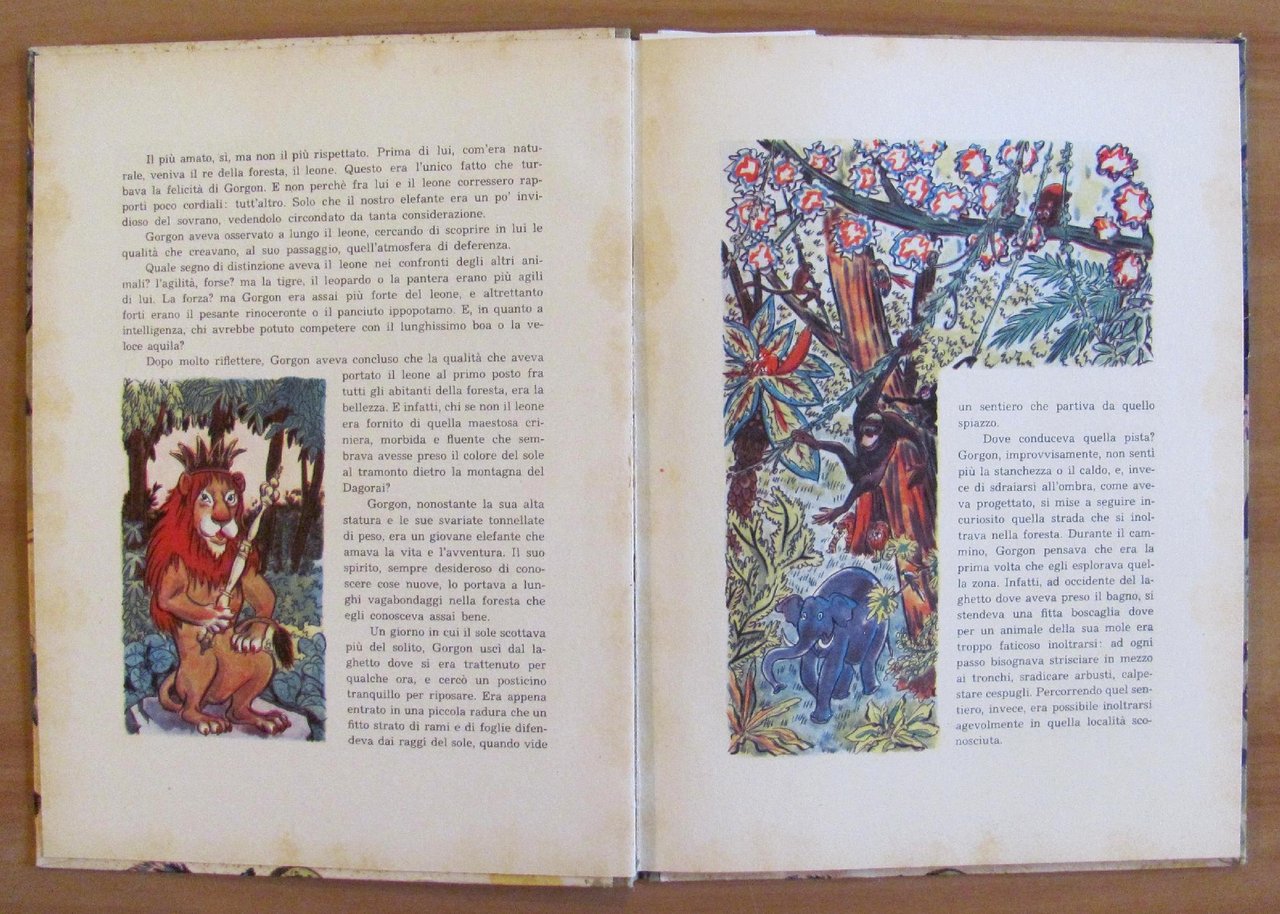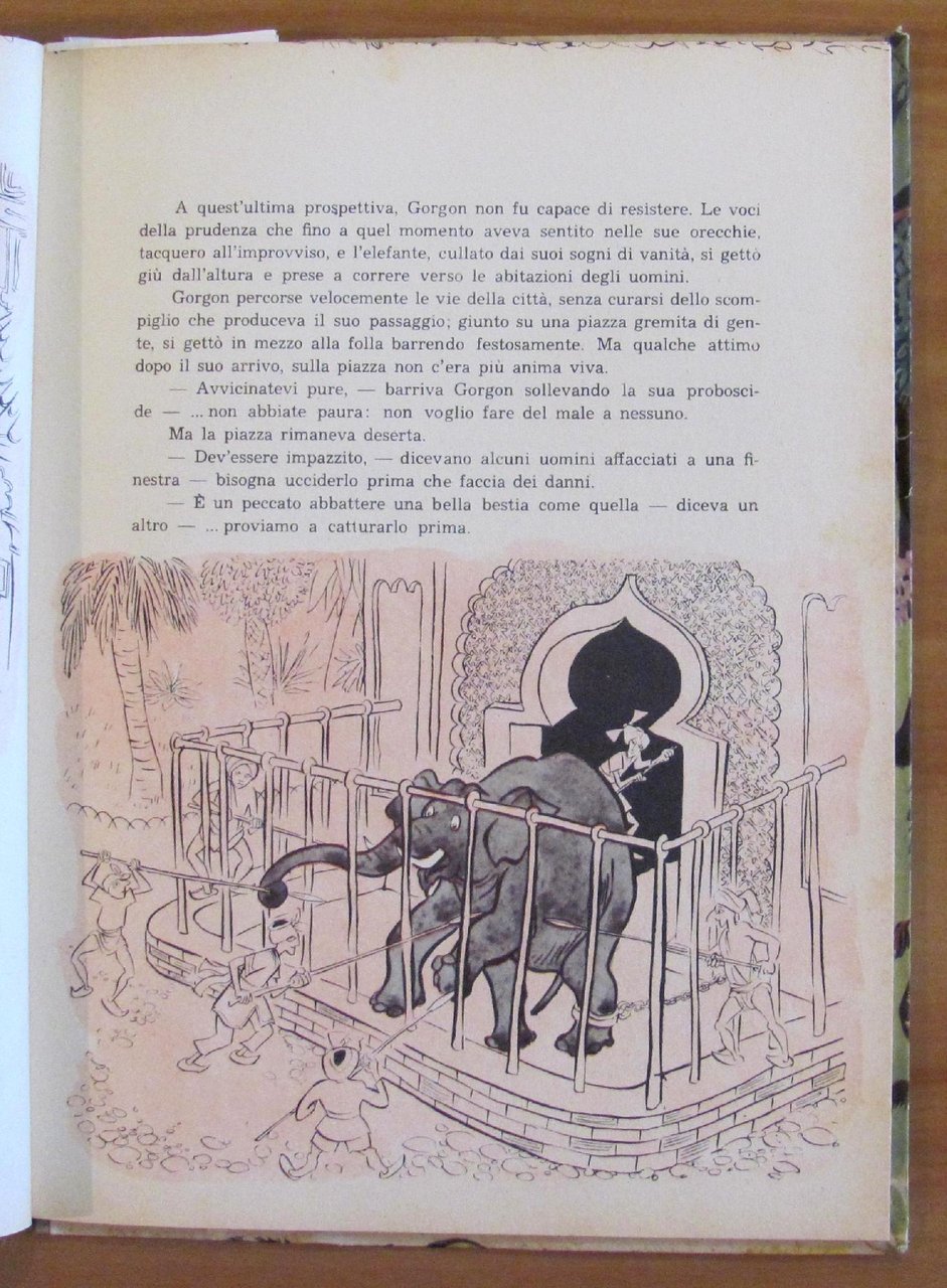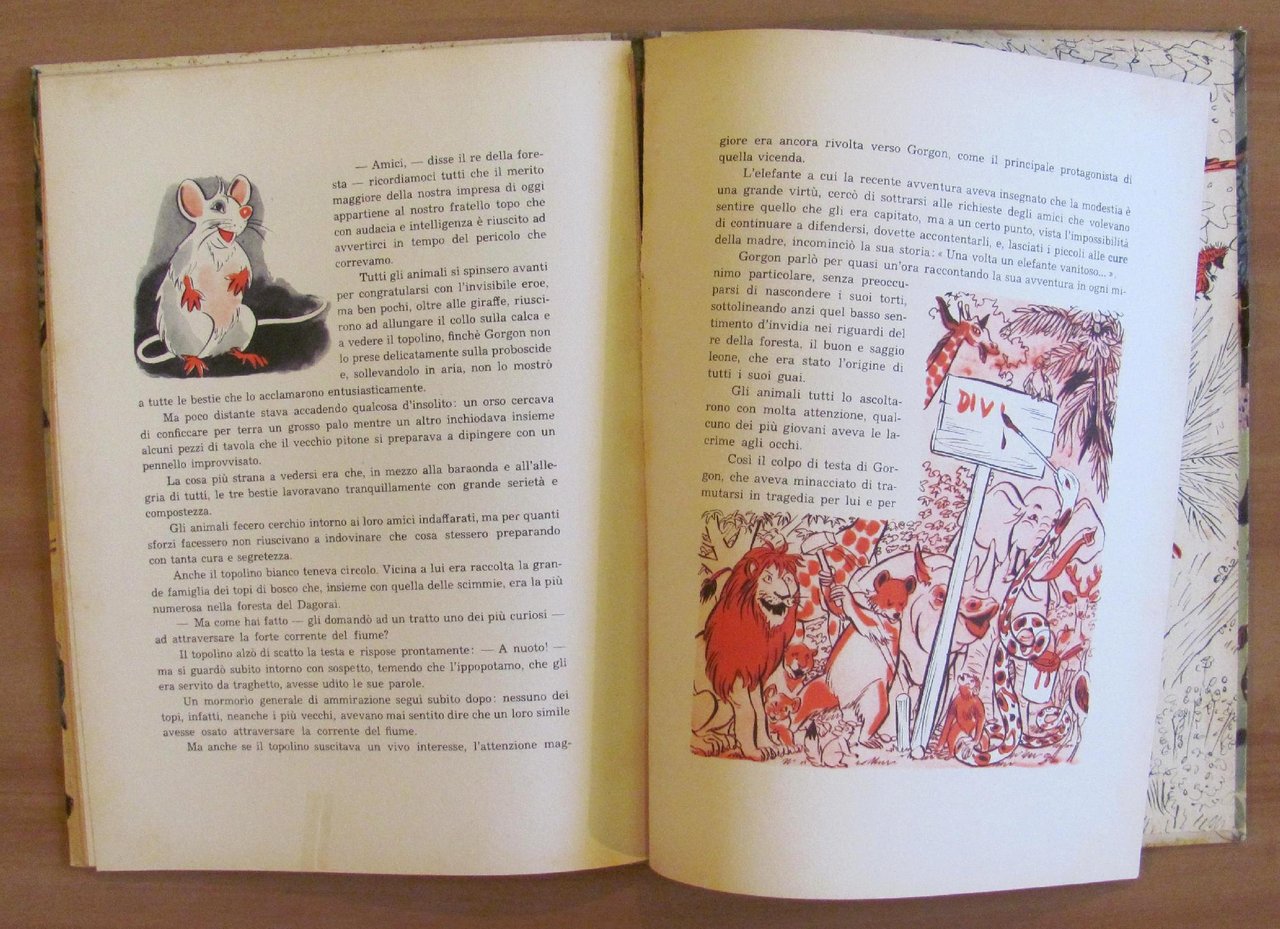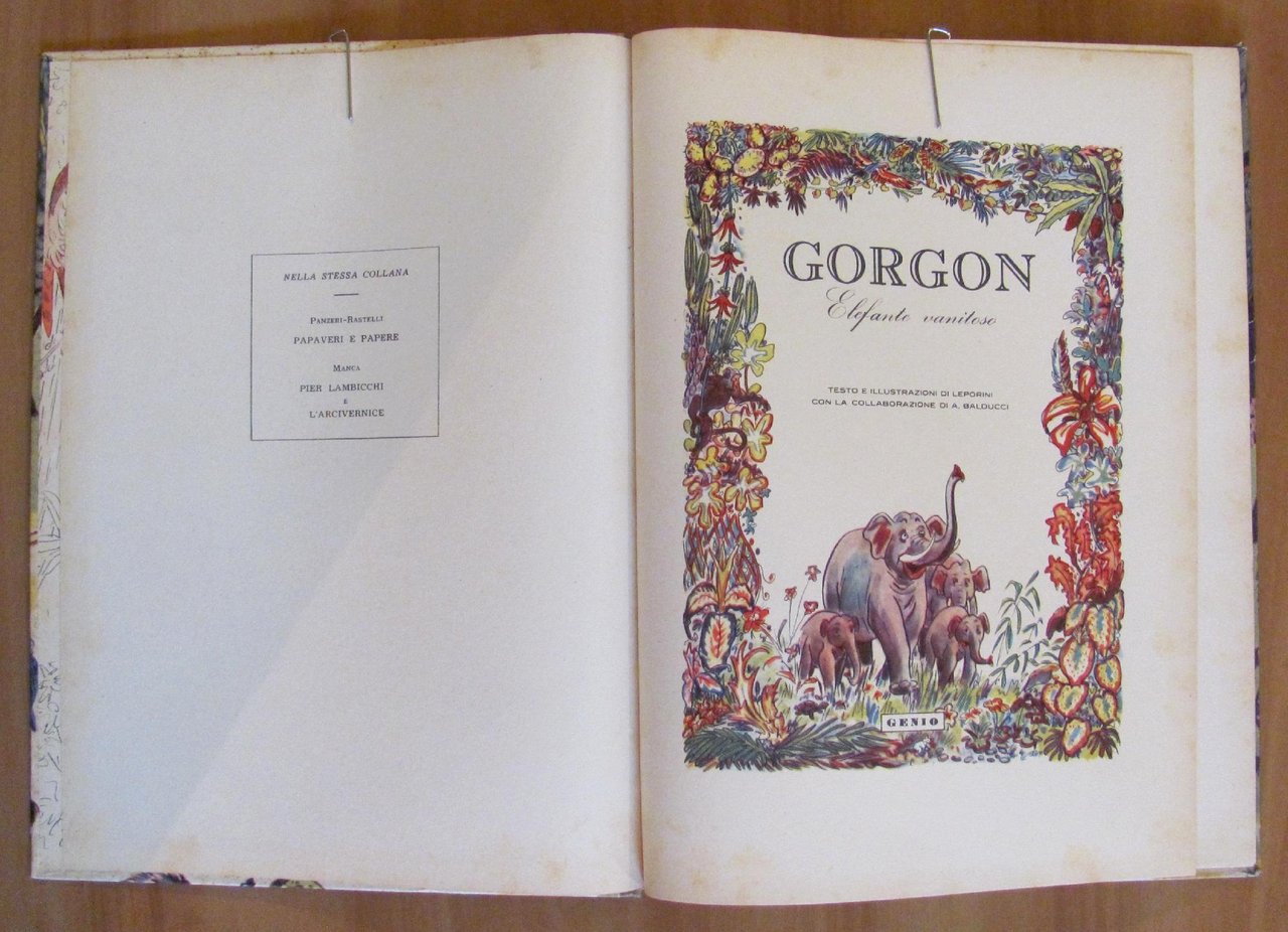 Moltissime illustrazioni in tricromia e a colori n.t., anche a piena e doppia pagina, di Leporini. Editrice Genio - Milano, 1953. Cartonato editoriale con dorso in tela originale. Lievi sporadiche fioriture del tempo in qualche pagina e lieve allentamento della cerniera in alto all'ultima pagina (tutto come da foto). 21x28,5; pp.38. Raro, Ottimo stato. , Molto buono (Very Good)