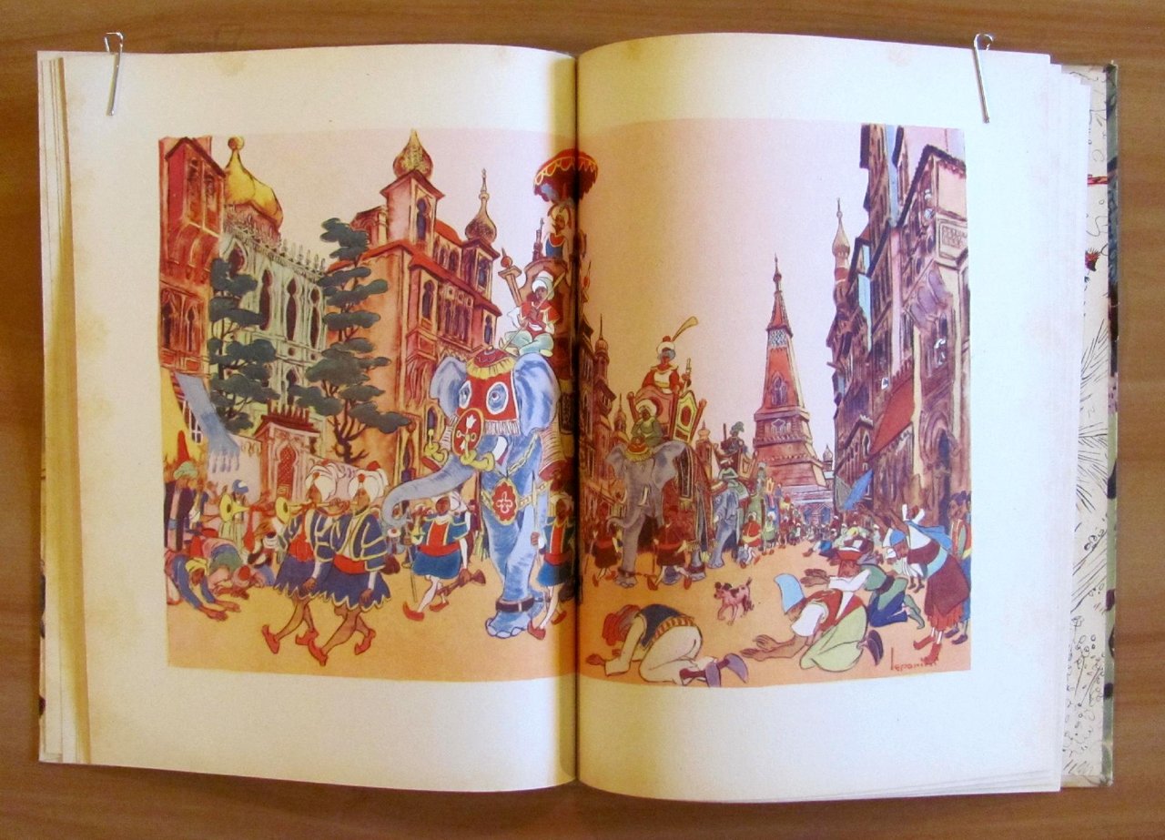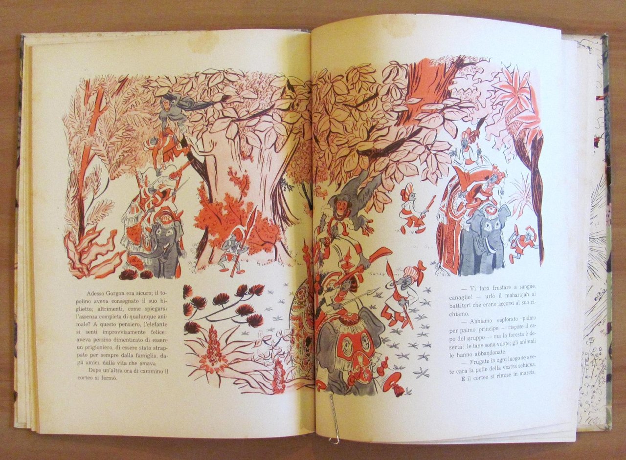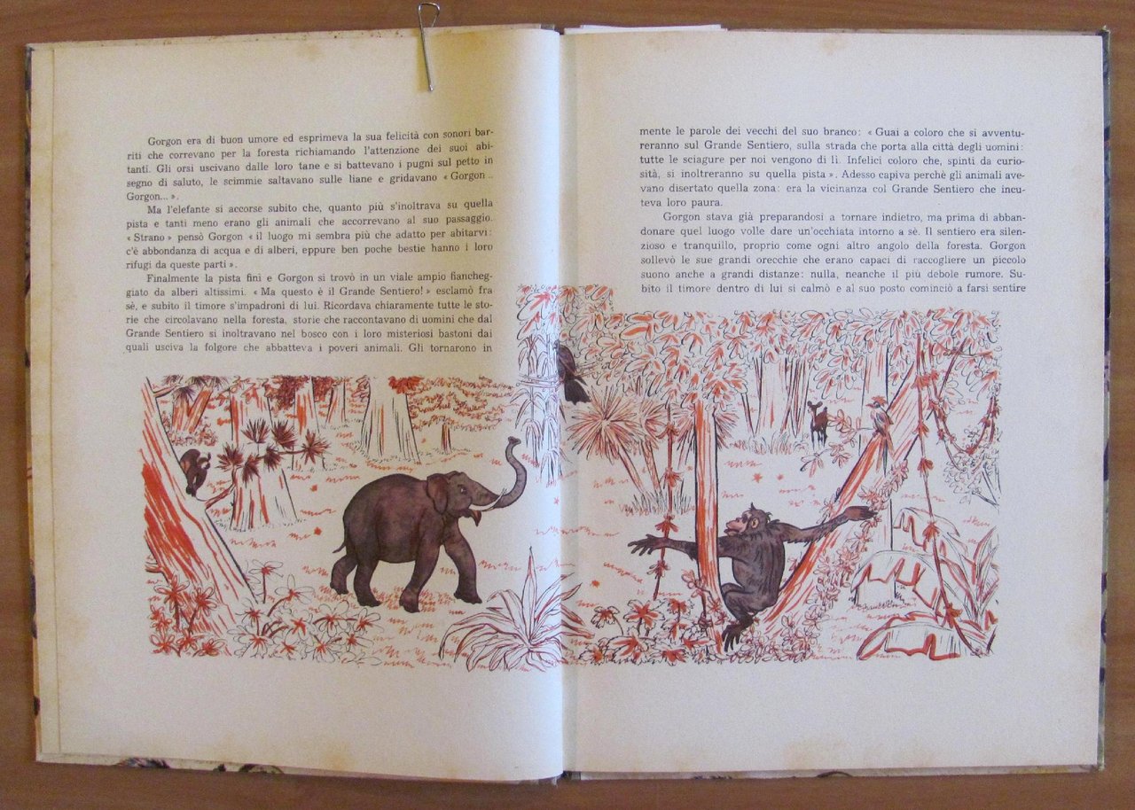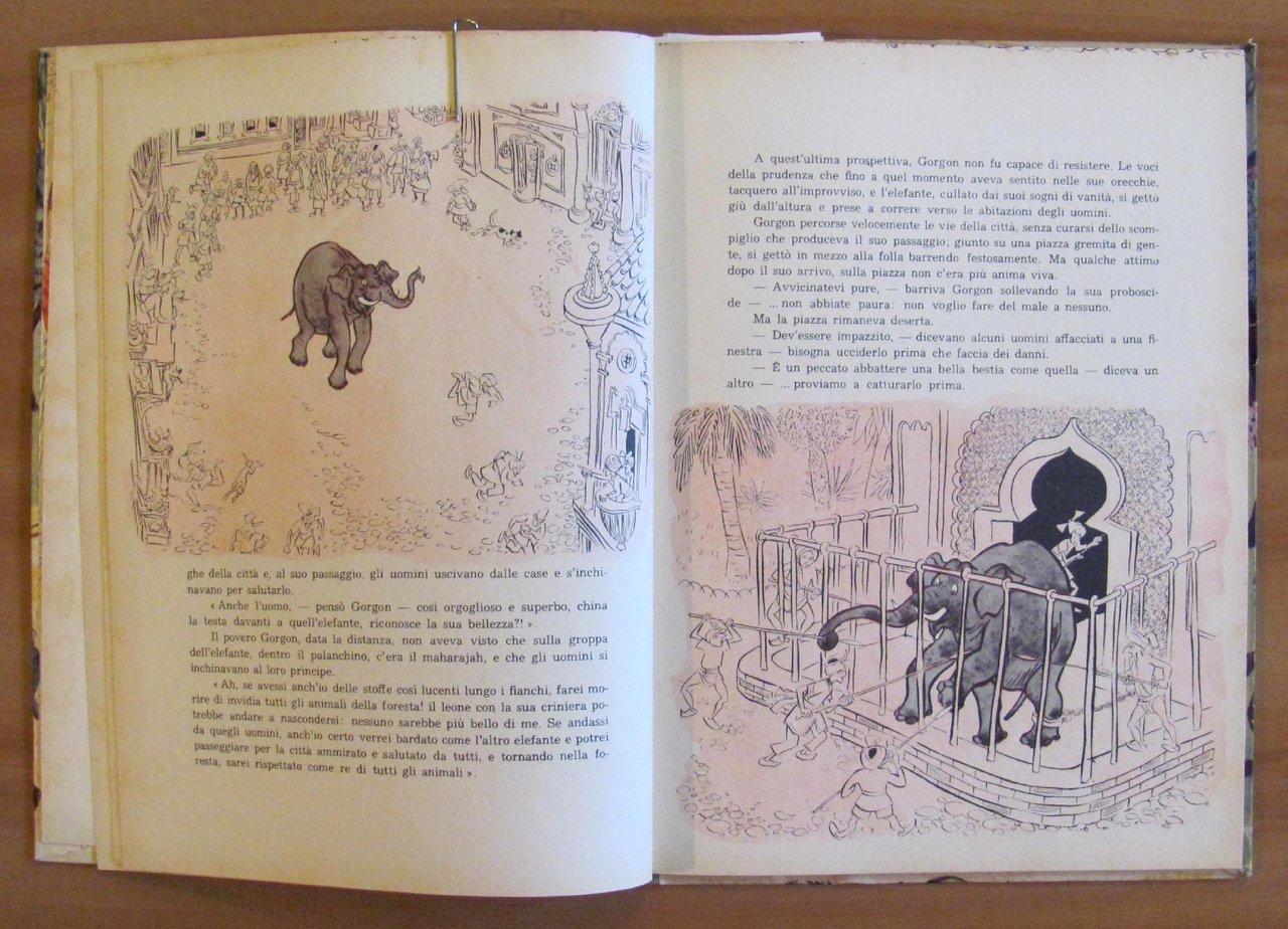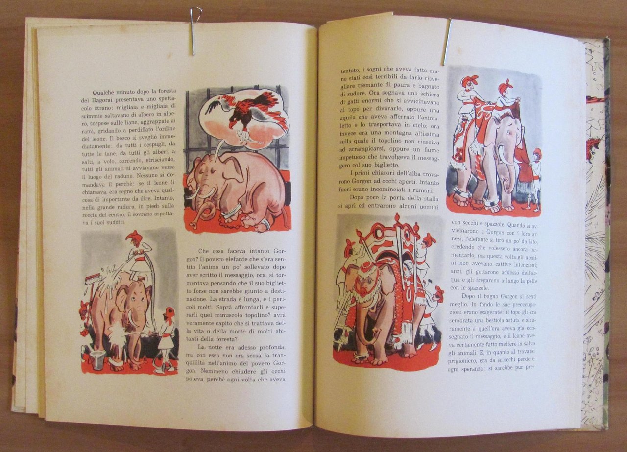Moltissime illustrazioni in tricromia e a colori n.t., anche a piena e doppia pagina, di Leporini. Editrice Genio - Milano, 1953. Cartonato editoriale con dorso in tela originale. Lievi sporadiche fioriture del tempo in qualche pagina e lieve allentamento della cerniera in alto all'ultima pagina (tutto come da foto). 21x28,5; pp.38. Raro, Ottimo stato. , Molto buono (Very Good)