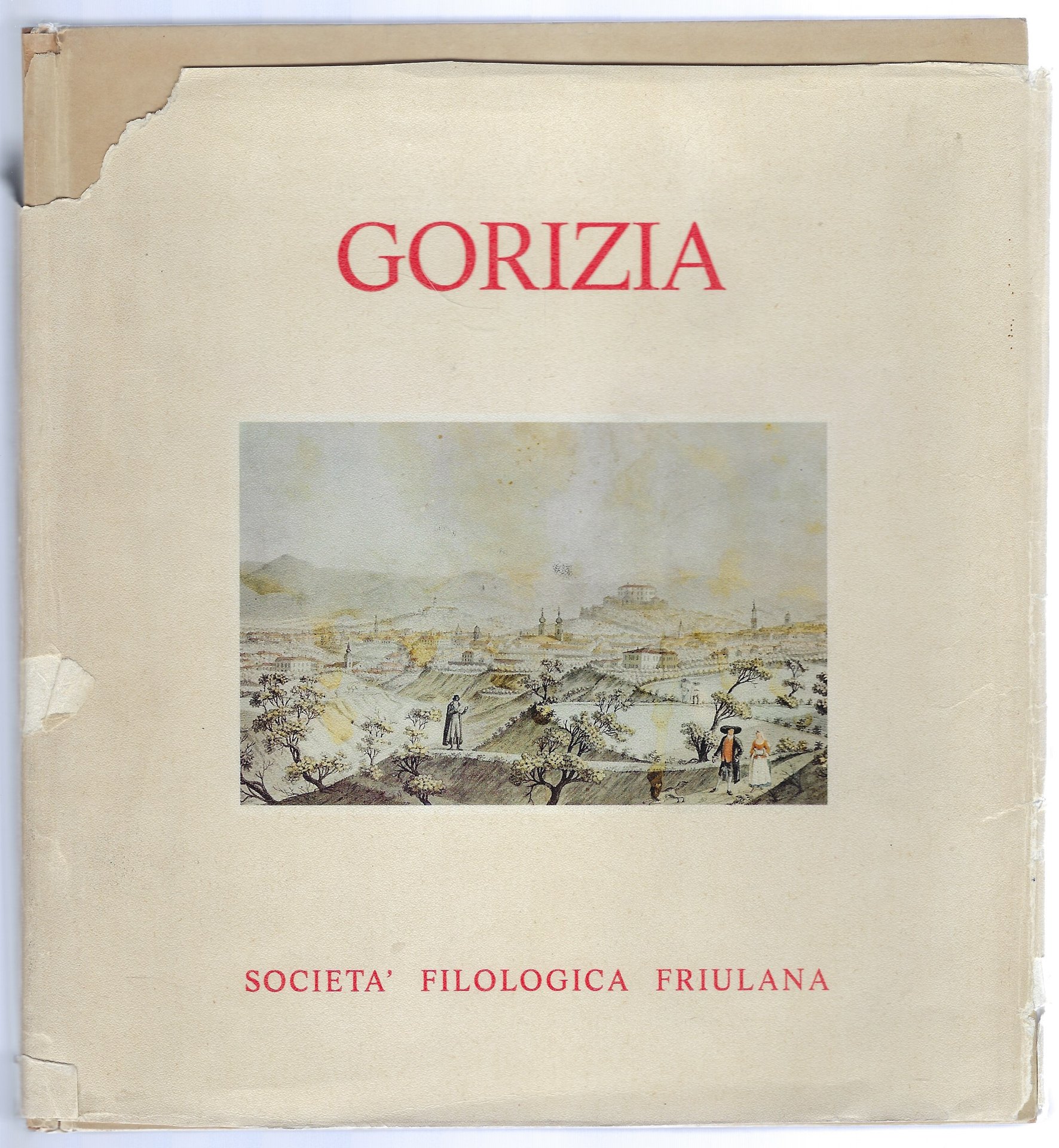 Sovraccoperta illustrata con strappi e mancanze.