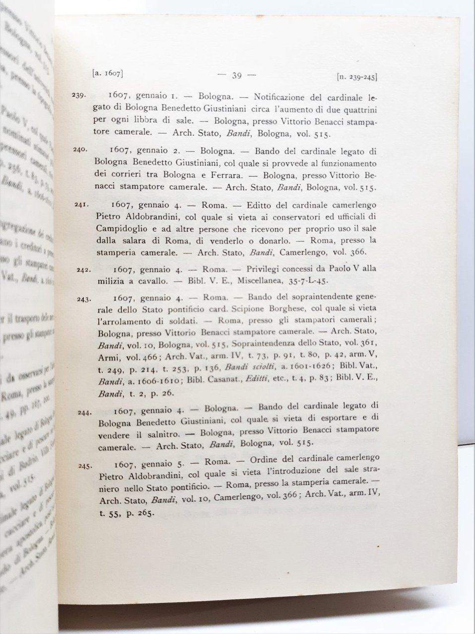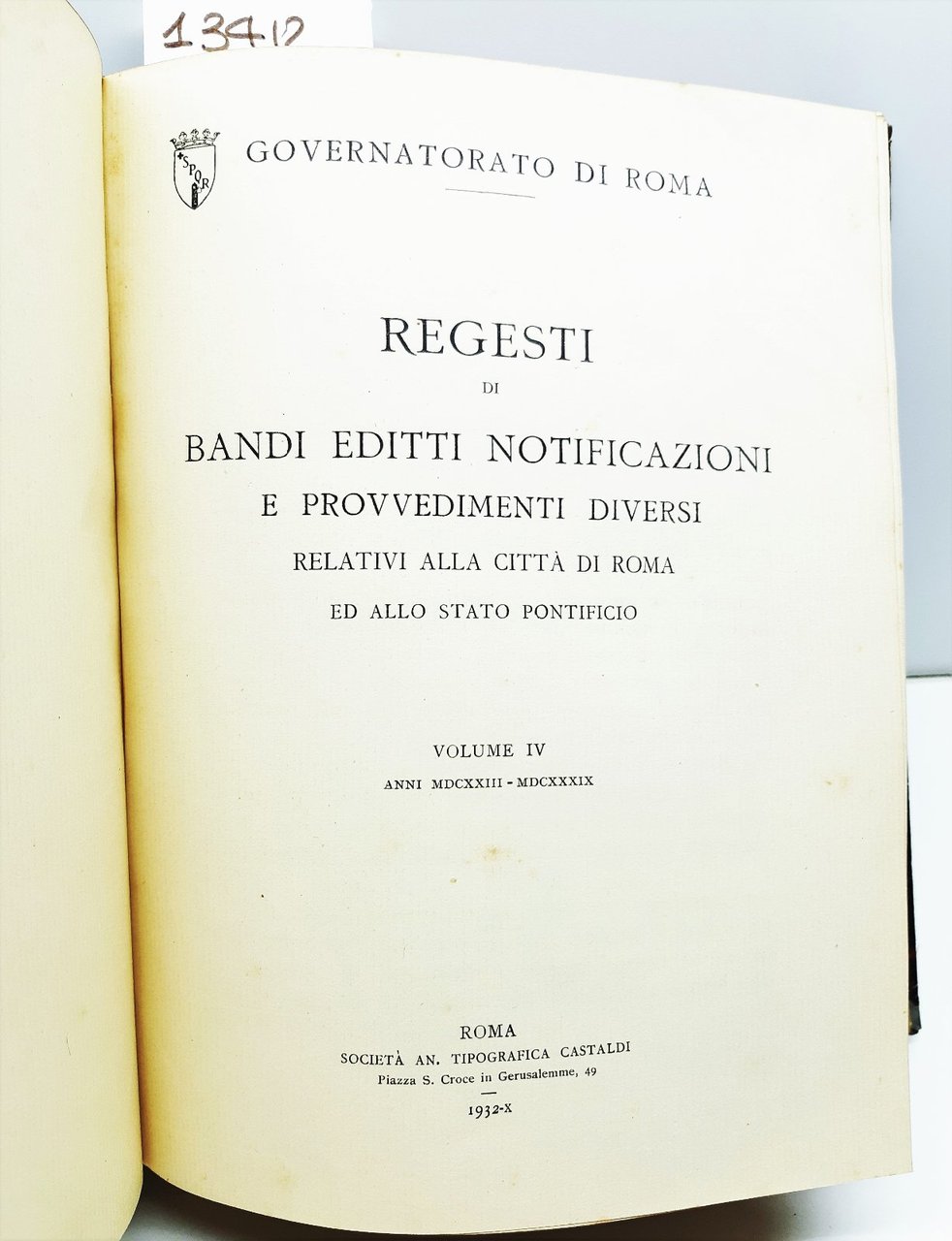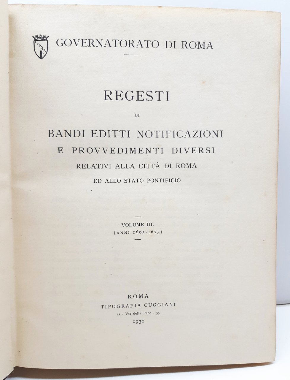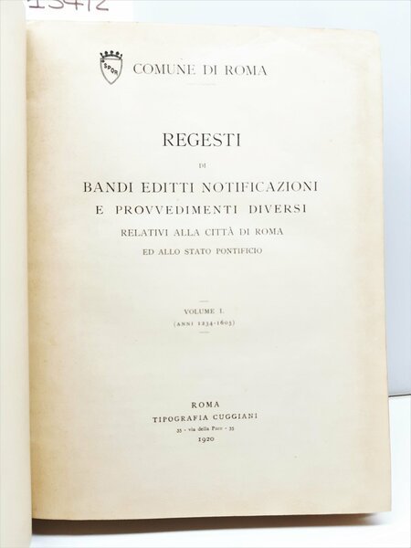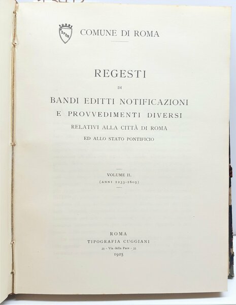 Governatorato di Roma Regesti di bandi editti notificazioni e provvedimenti diversi relativi alla citt‡ di Roma e allo Stato Pontificio 3 tomi 5 volumi