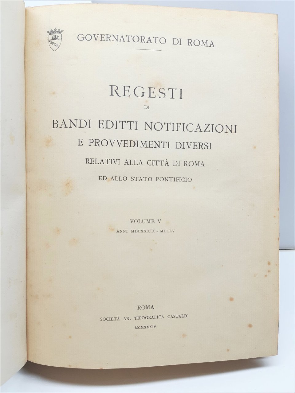 Tomo 3∞: contiene il volume quinto anni 1639-1660 tipografia Castaldi 1934