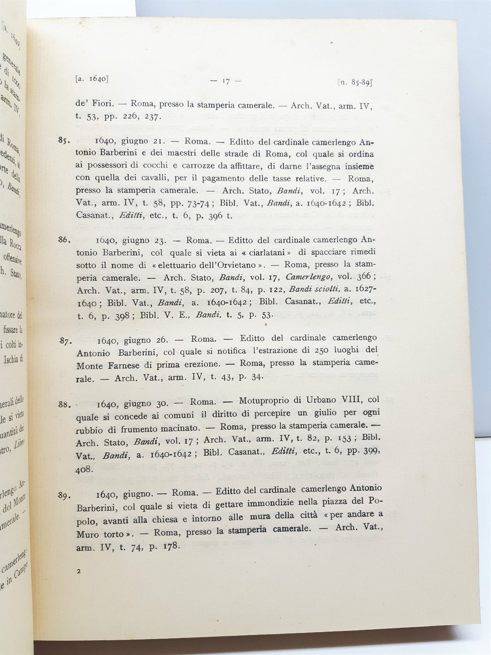 Tomo 2∞: interno in discreto stato alcune lievi fioriture le pagine interne che non vanno a disturbare la lettura, in questo tomo sono presenti il volume 3 anni 1605-1623 tipografia Cuggiani 1930 n. pagine VIII+ 274 e il volume 4 anni 1623 1639 stampato a Roma societ‡ tipografica Gastaldi 1932 numero pagine VI + 306.,