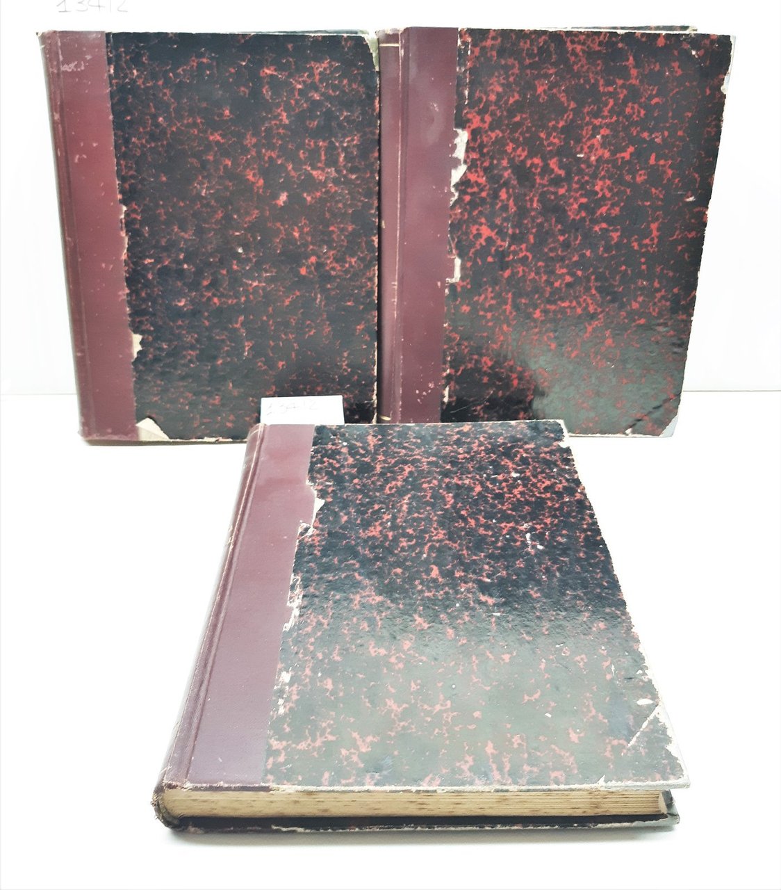 legatura rigida editoriale In mezza tela con piatti in cartonato in discreto stato con alcune mancanze ai piatti e ai margini, dorso in tela colore rosso scuro con titoli in oro e piccole spellature ai margini,