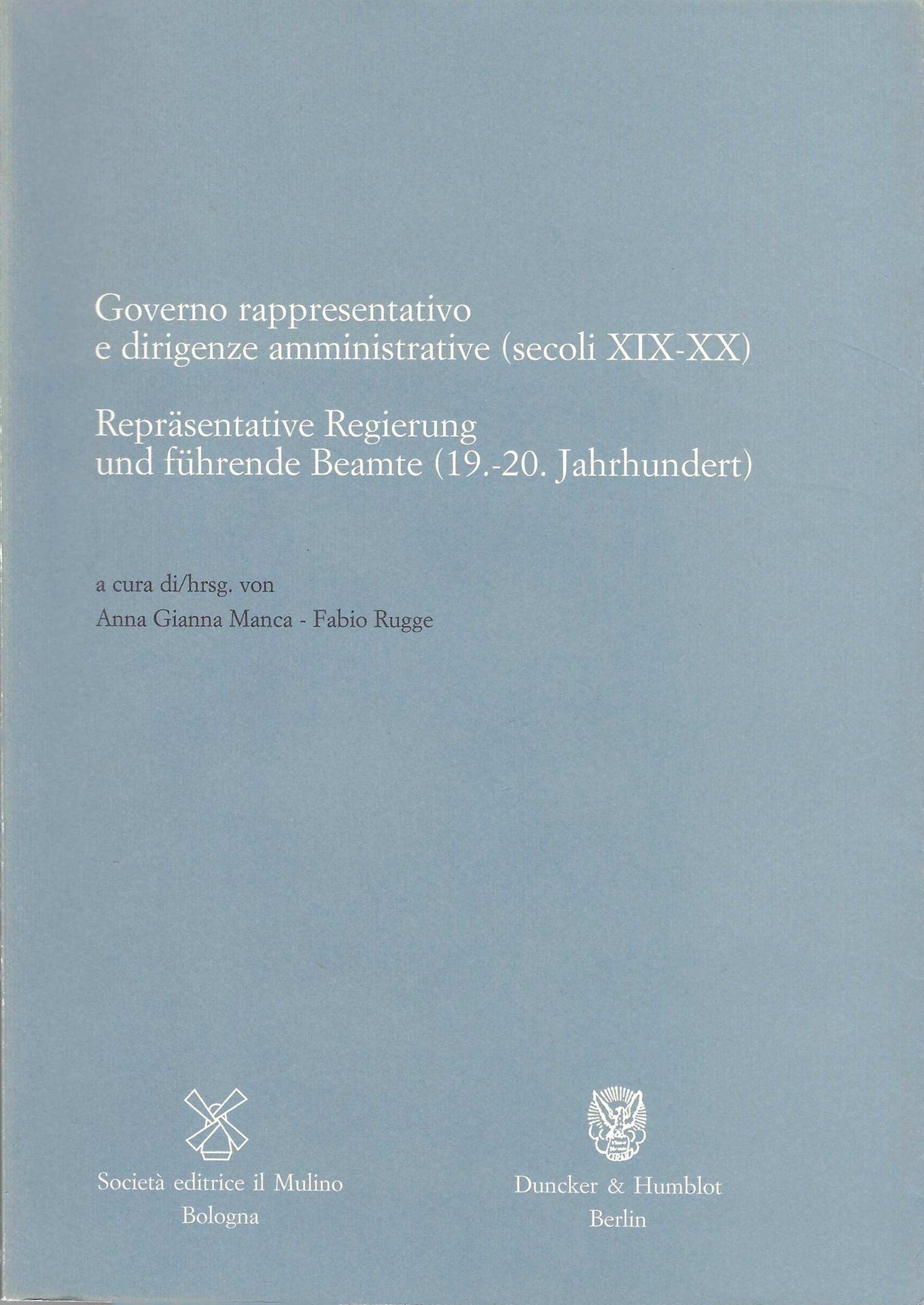 Manca Anna Gianna, Rugge Fabio: Governo rappresentativo e dirigenze amministrative (secoli XIX-XX). Il Mulino, Dunker & Humblot, 2008.