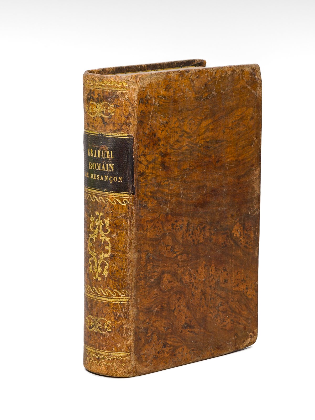 Rédigé et publié par les soins et par ordre de Son Eminence Mgr Jacques-Marie-Adrien-Césaire Mathieu, Archevêque de Besançon, 1 vol. in-12 reliure de l'époque pleine basane racinée, J. Jacquin, Besançon, 1872, xxvi-674-cxxxvi pp. Bon état (reliure lég. frottée) pour ce graduel peu commun.