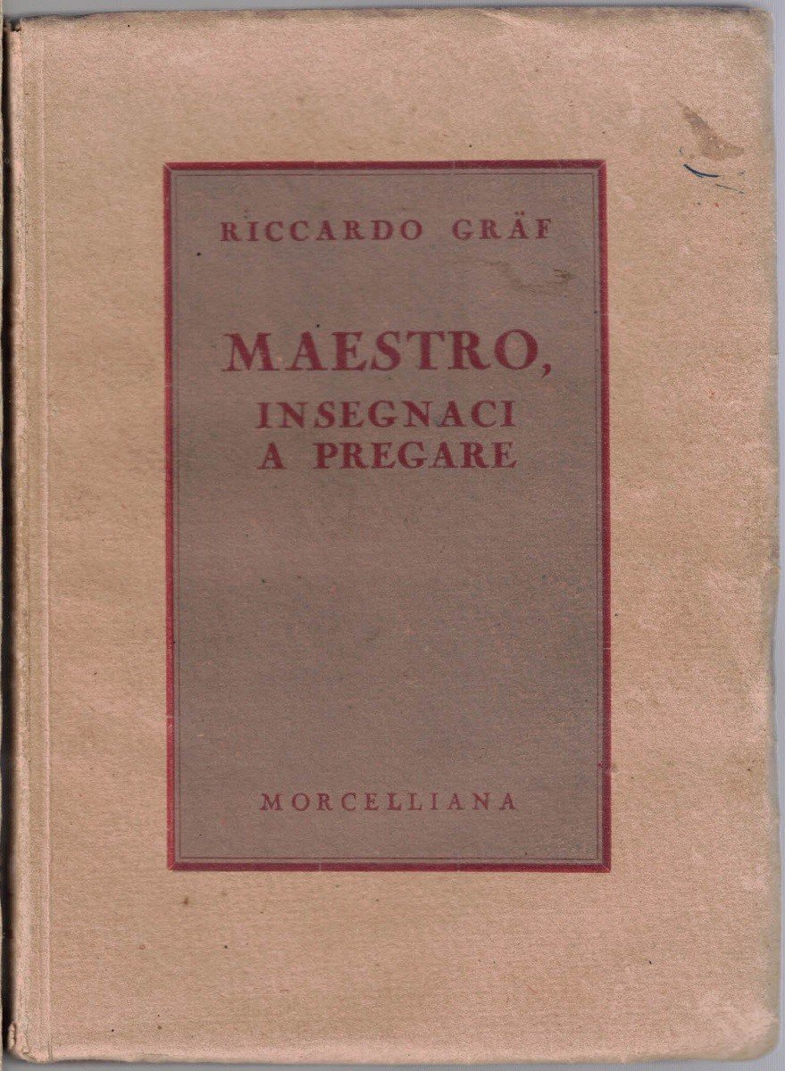 Riccardo Graf, Maestro, insegnaci a pregare, traduzone di Francesca Dalmazzo, Morcelliana, Brescia 1941, quarta ed., pp. 224, cm 17, br. ed. Ordinarie tracce d’uso, leggera brunitura della carta, per il resto e nel complesso buon esemplare, di piena fruibilità e con brossura solida.