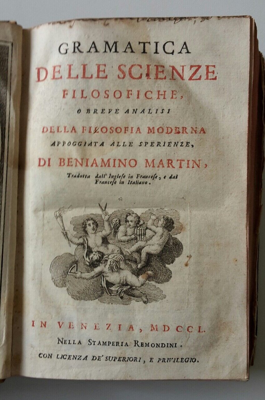 GRAMATICA DELLA SCIENZE FILOSOFICHE DI BENIAMINO MARTIN VENEZIA REMONDINI 1750