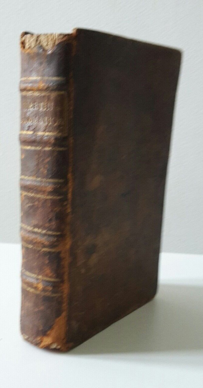 Danni al dorso, mancanza della cuffia superiore, segni ai piatti. rifilatura ai margini superiore e inferiore, carte integre ma qualcuna mal ripiegata e con lievissima traccia di umido al margine superiore.