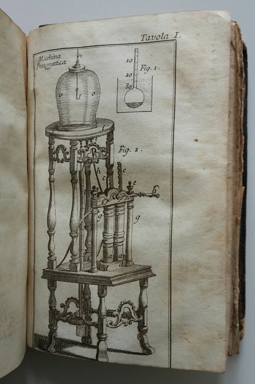 legatura in piena pelle con tassello al dorso, taglio colorato, antiporta illustrato con ritratto, 2 tavole sinottiche ripiegate tra le pagine e 22 tavole incise in b/n ripiegate in fondo al volume.