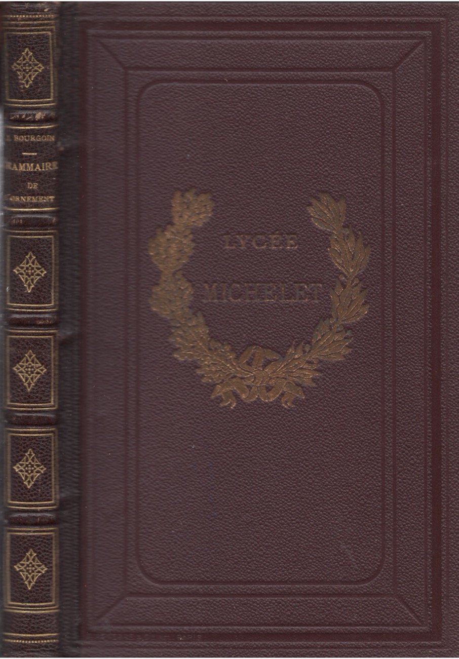 Pour servir a l'histoire, a la théorie et a la pratique des arts et a l'enseignement. In copertina Impresso in oro: Lycee Michelet incorniciato in un serto foglie di di alloro e di quercia