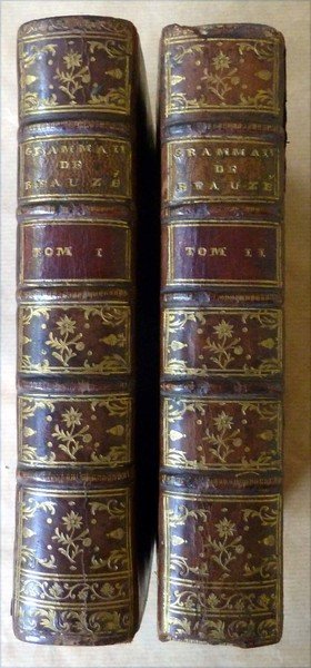 Deux forts volumes de format in 8° de : Tome Premier; XLVIII pp. (faux titre, titre, dédicace, préface; tableau ananlytique del'ouvrage); 619 pp. Et pour le Tome Second; 2 ff. (faux titre et titre); 664 pp.; 2 ff. Reliure de l'époque en pleine basane brune; dos à ( nerfs; caissons dorés et ornés; titres et tomaisons dorés. tranches marbrées. Tome premier, coupes un peu frottées; Tome second, coiffes usées, important départ de fente à une charnière; papier bruni par endroit. Bon exemplaire malgé tout. Première édition. Brunet, chap. Grammaire générale 10541. Voir les photos.