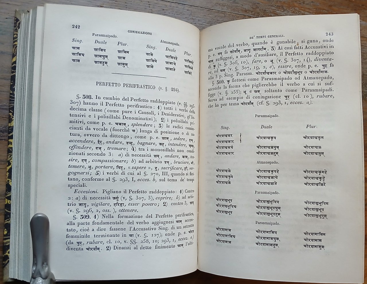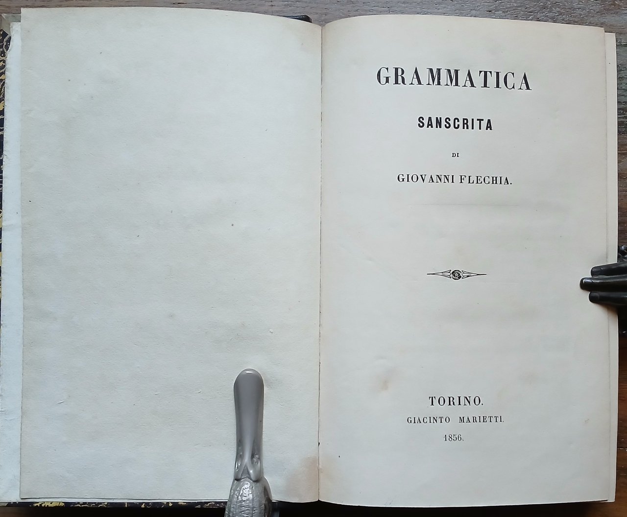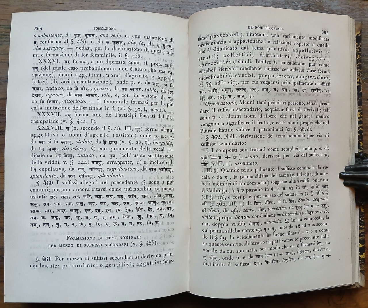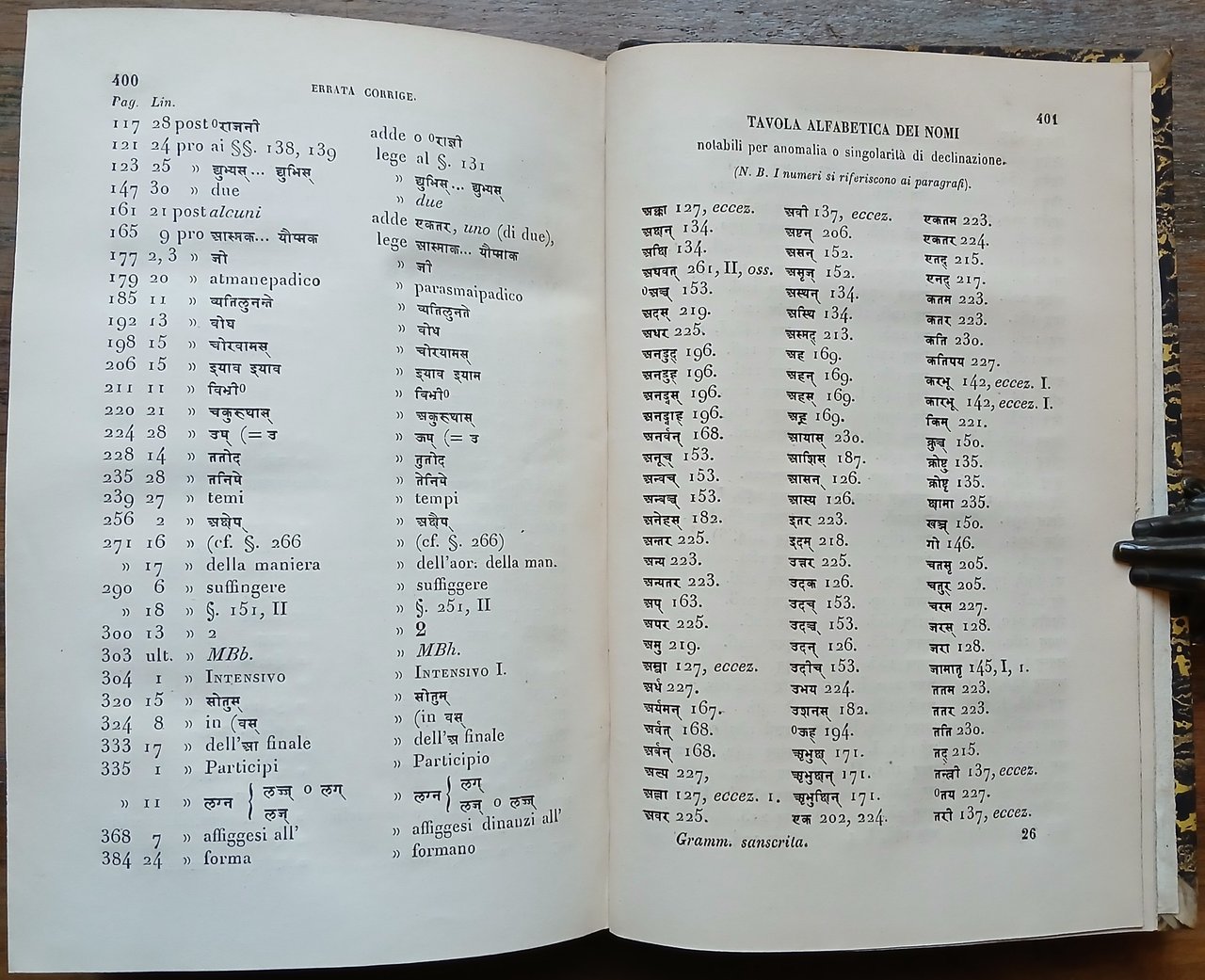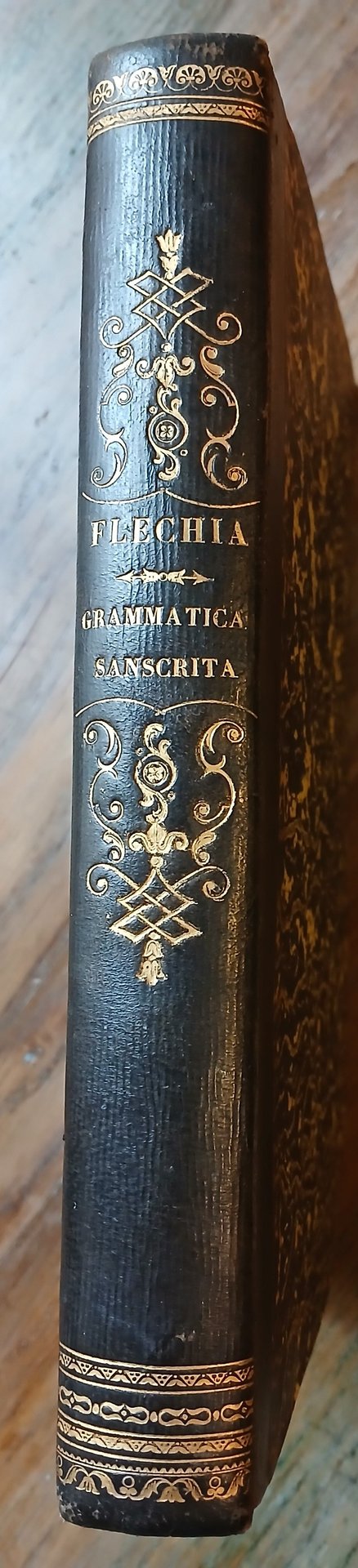 (Orientalismo; Indianistica; Indologia; Glottologia e linguistica; Lingue indoeuropee; India) In 8°, legatura coeva in mezza pelle nera con titoli ed impressioni in oro al dorso, carta marmorizzata ai piatti, tagli spruzzati, pp. (8),408. Edizione originale della prima grammatica in italiano della lingua sanscrita. Ottimo stato di conservazione.