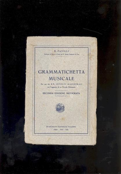 IN 8° picc. ( cm.19,5 X 13 ), pp. 57 + 1 c. CON ELENCO DELLE PUBBLICAZIONI. COPERTINA<BR>EDITORIALE IN BROSSURA CON TITOLO ENTRO CORNICE. E. FAVILLI, FU ORDINARIO DI MUSICA E CANTO NEL R. ISTITUTO MAGISTRALE DI PISA. SECONDA EDIZIONE MIGLIORATA. MANCANZE AL DORSO ALTRIMENTI OTTIMA CONSERVAZIONE, INTONSO. ID 1308