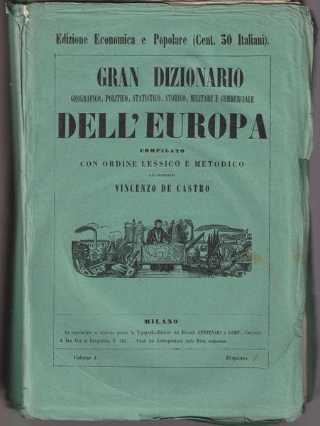 Gran dizionario geografico, politico, statistico, storico, militare e commerciale dell'Europa, DISPENSE ORIGINALI (mancanti n. 33 e 34), vol. 1 numeri 1-40