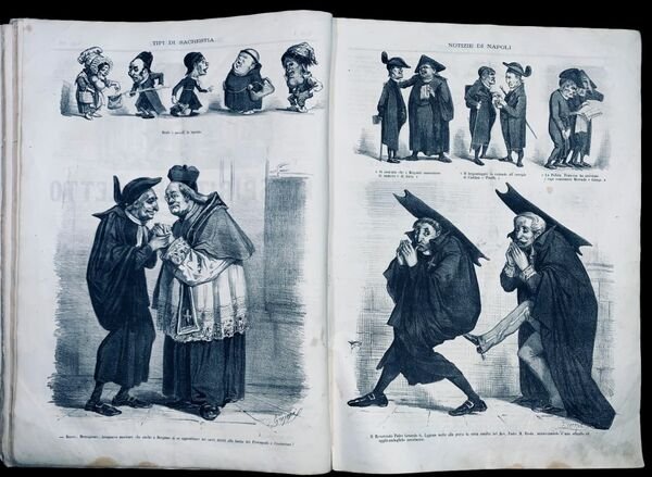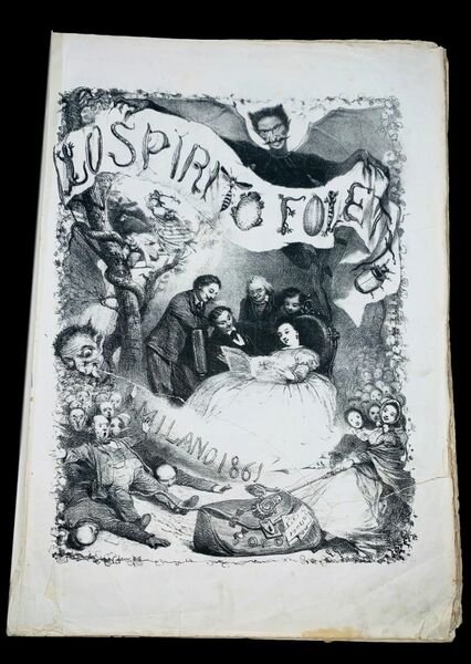 Grande collezione di 17 annate del celebre giornale satirico Lo Spirito Folletto, presenti le prime 4 annate complete, poi mancano gli anni 1865-1867, 1871 e poi le annate arrivano fino al 1881.